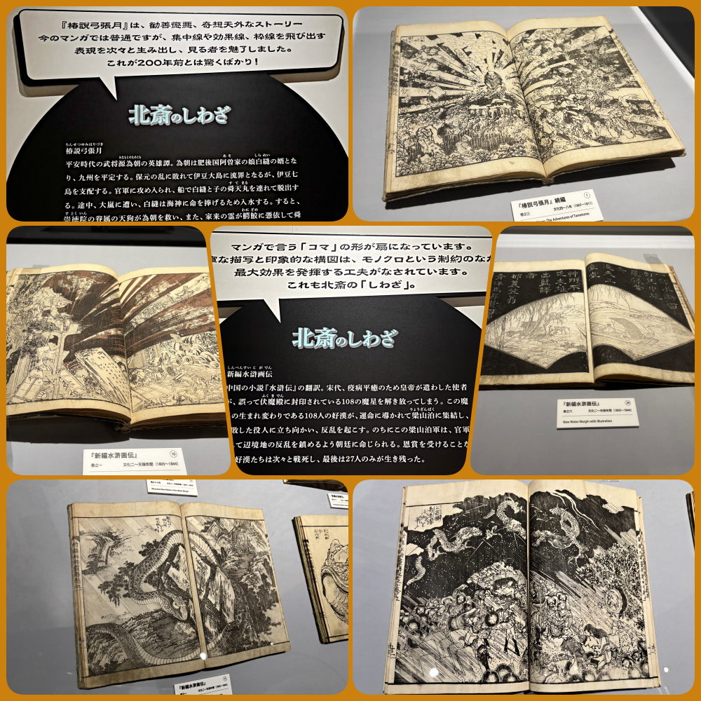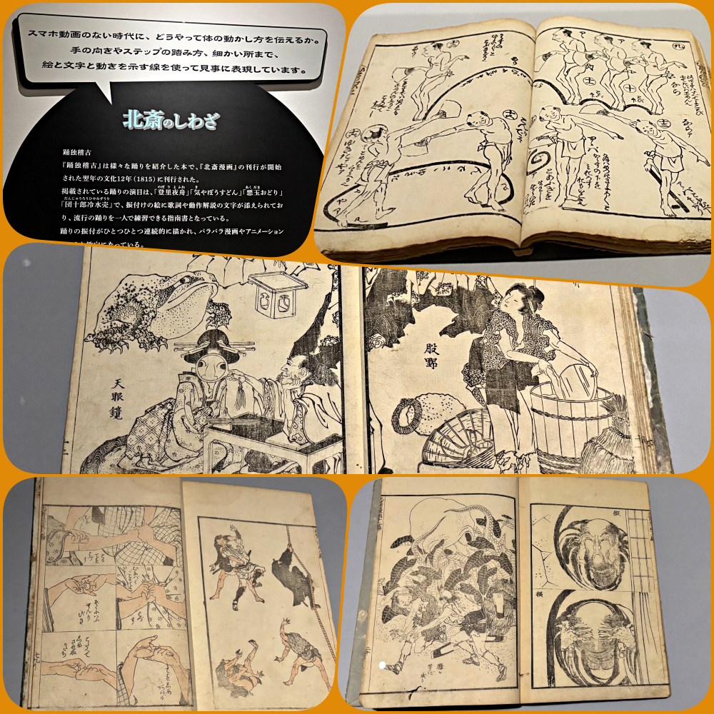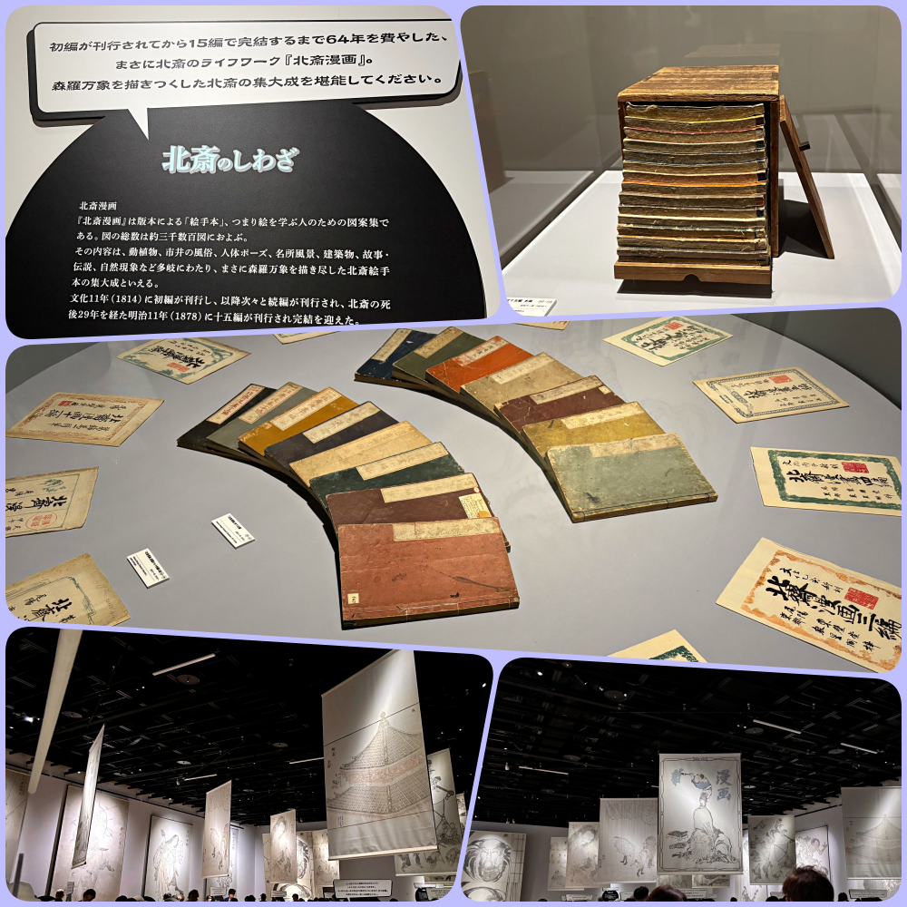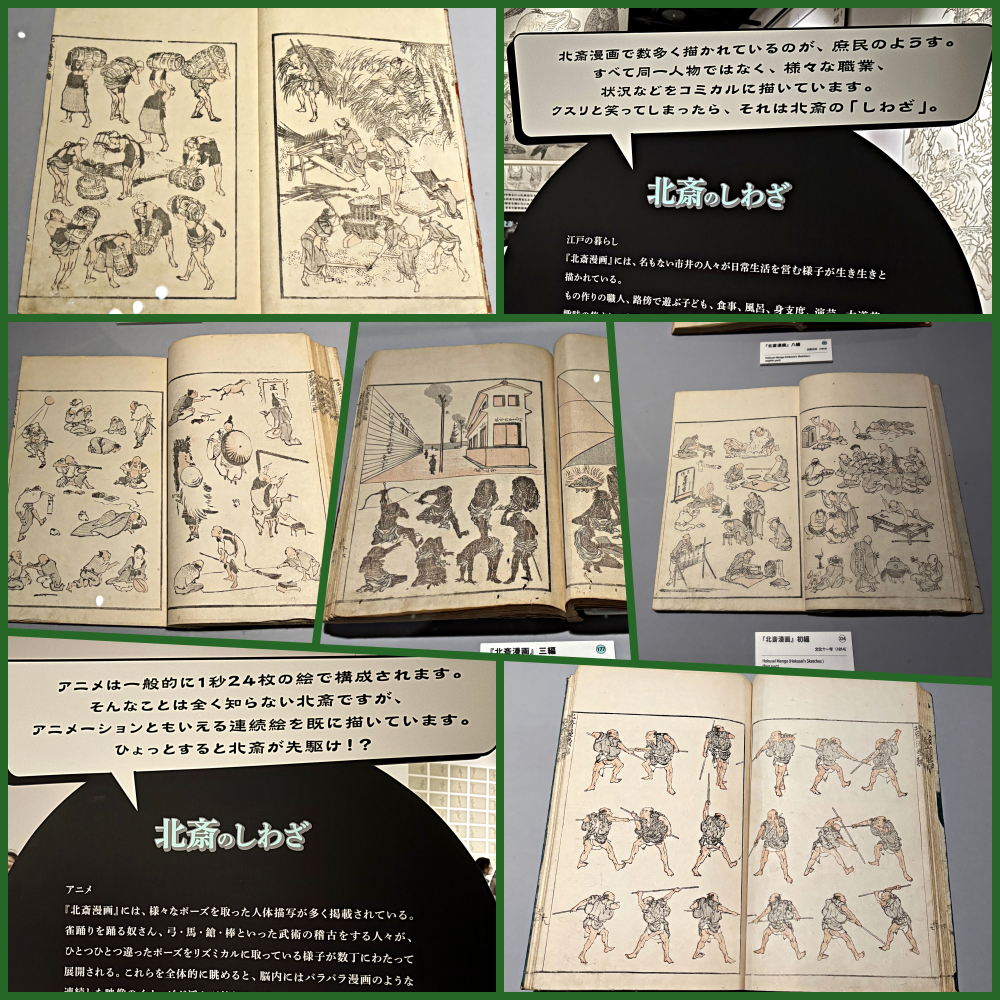 この展覧会は「北斎漫画」1,700冊を所蔵する浦上満氏(浦上蒼穹堂) の全面協力のもと、主に「漫画」に焦点を当てて開催されています。