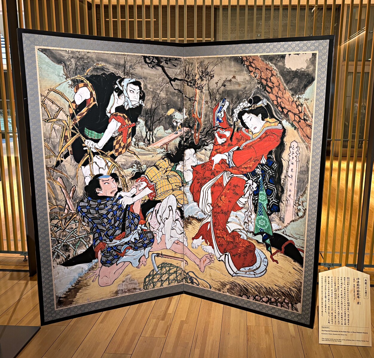 この展覧会で展示されている、香南市赤岡町の4つの地区が所蔵(絵金蔵所管) する芝居絵屏風は、毎年行われる須留田八幡宮神祭および土佐赤岡絵金祭りで軒下に飾られるもので、その多くが二曲一隻の形態。