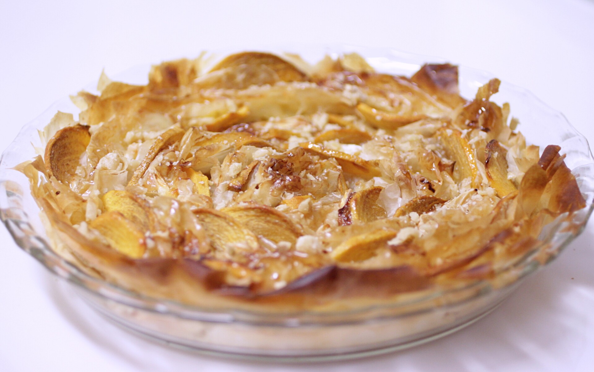 パートフィロの間に柿とカマンベールを挟んで焼いたのですが、