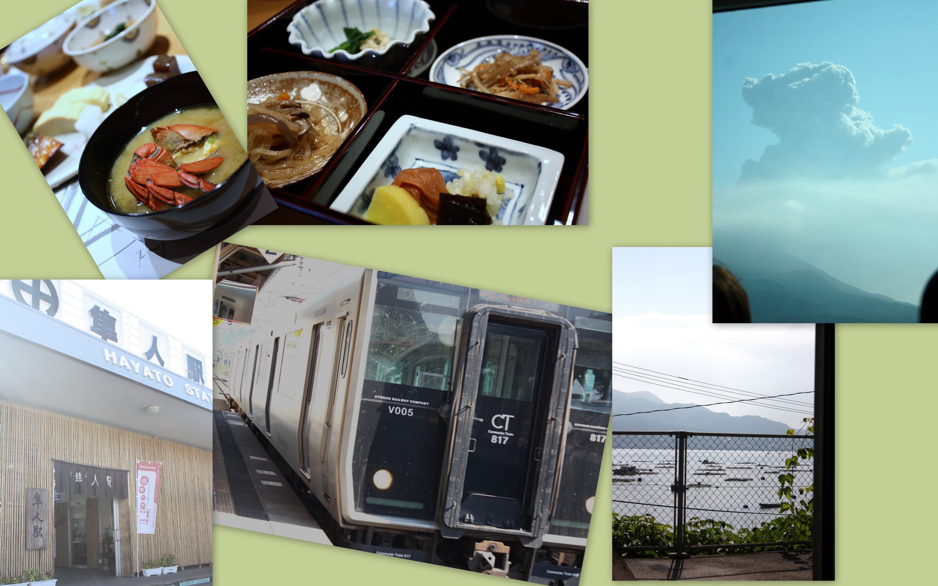 日陰になっている方の座席に座り、うたたねをしていてふっと窓の外を見たら、噴煙の上がった桜島が見えました。