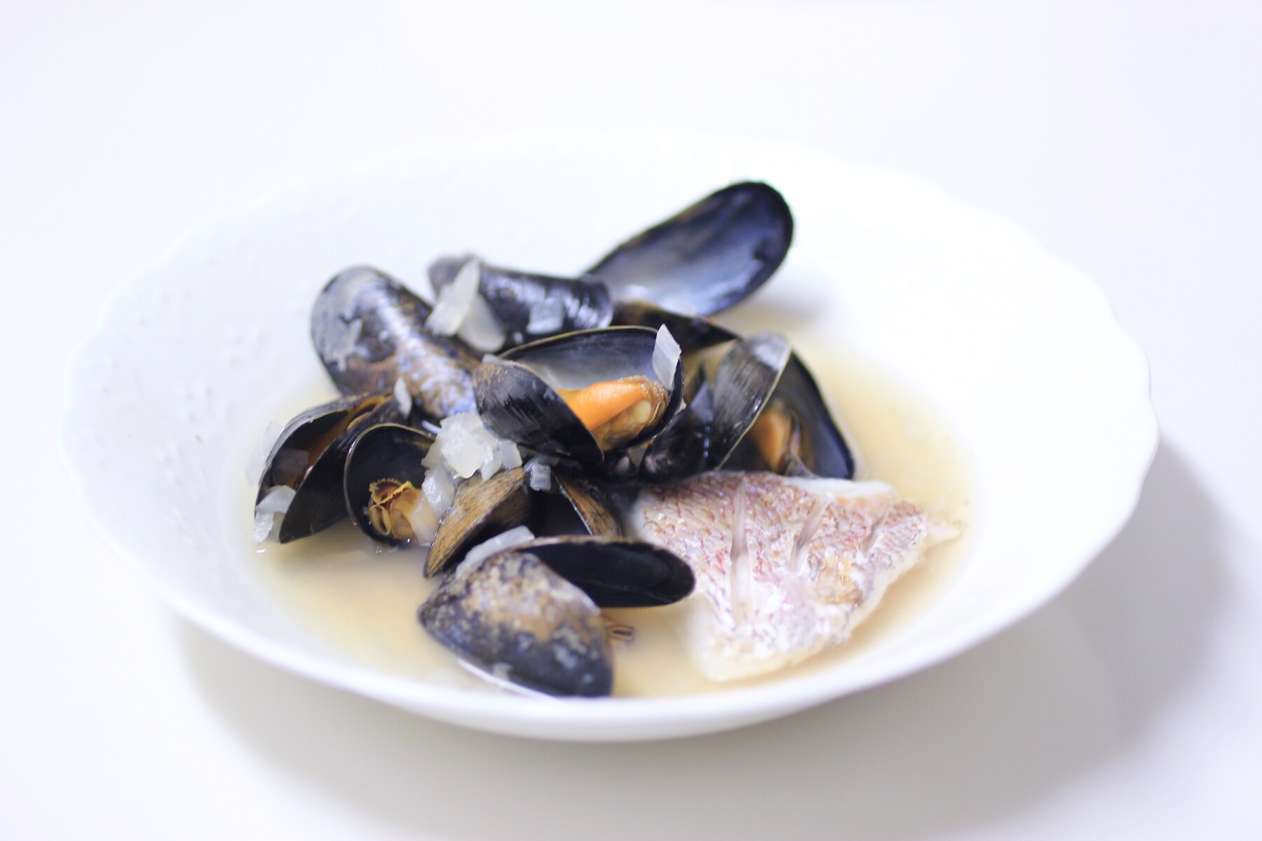モンサンミッシェルの小さなムール貝と真鯛を使って、