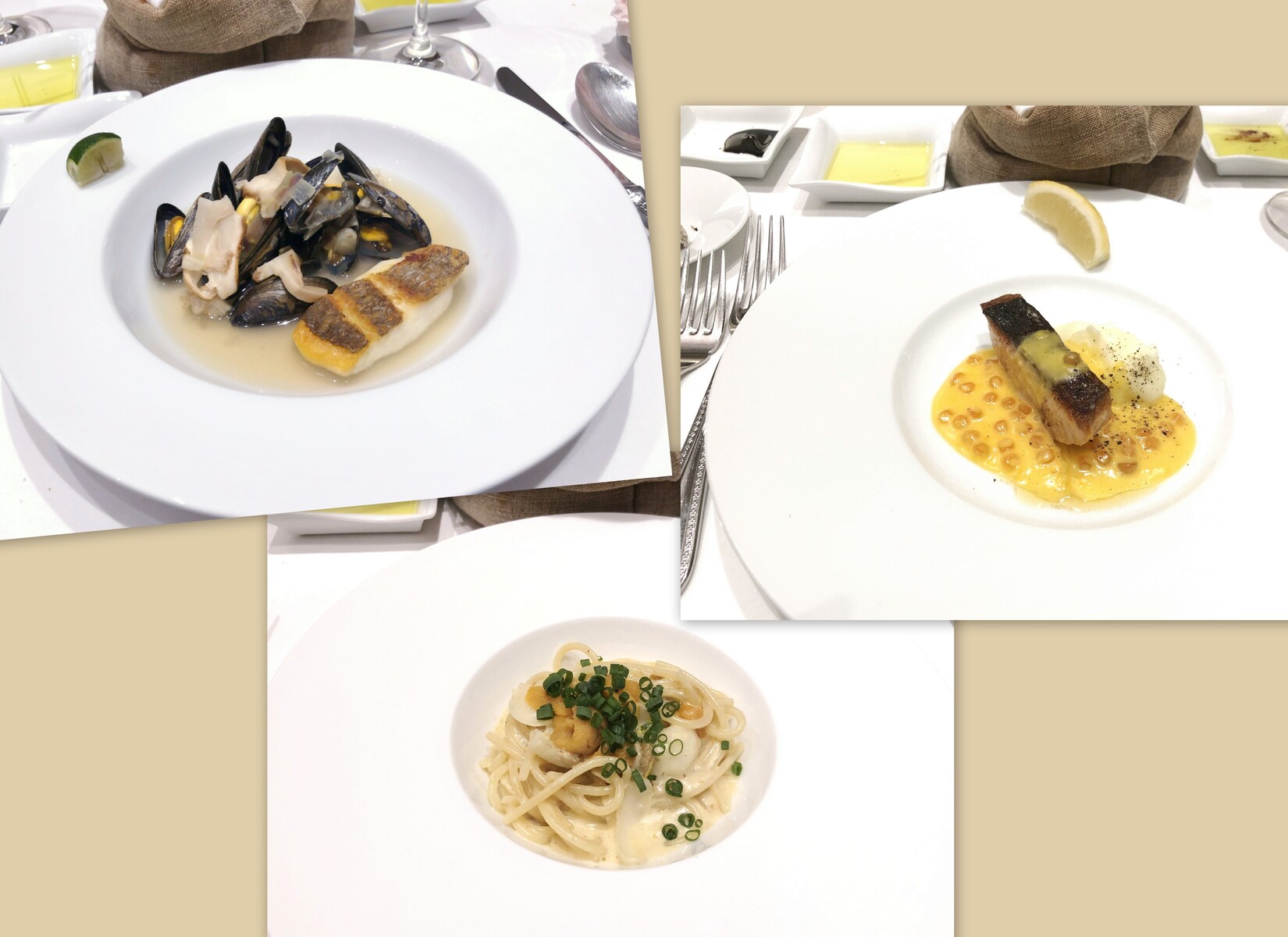 一つ目は、この前 jugon が真似て作った、モンサンミッシェルのムール貝と鯛の一皿。今見たら、何か茸も入っています・・・多分、ポルチーニ茸。