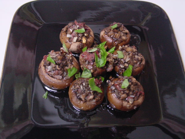 初めて作った "マッシュルームのオーブン焼き" ・・・イタリアンパセリが無くって、代わりにバジルを飾ってみました。中がジューシーで美味。レパートリーに追加です。