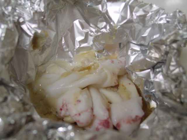 そして、小さすぎて塩辛は作れないやりいかの腸は、塩をしてホイルに包んで焼きます。出来上がり寸前にお醤油少々、これがとっても美味しい! 大好きないかくんのおまけです。いつもの煎り銀杏、サラダ。お漬物。そしてそして、今日は炊飯器を新しくしたので、ちょっとお味見ということで・・・〆にごはん&お味噌汁+α!! これまた、いかがなものか??