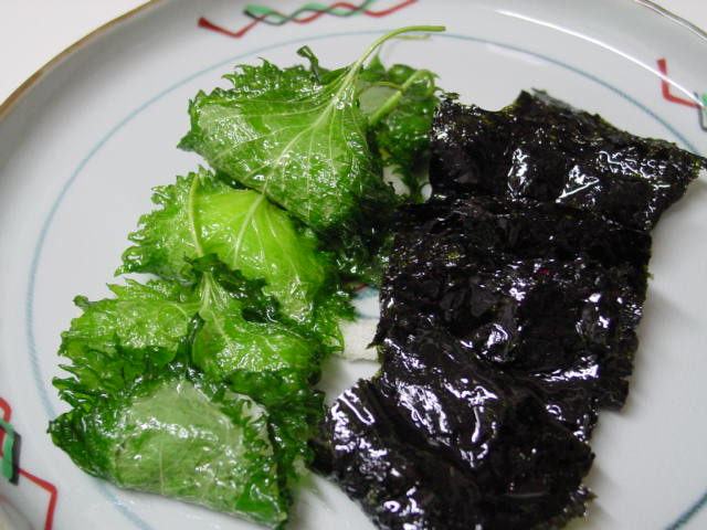 大和芋を大葉で包んで揚げたお芋揚げと焼き海苔に包んで揚げた磯部揚げ。