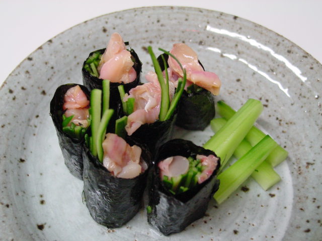 赤貝のひもときゅうりの皮でひもきゅう。お寿司屋さんのひもきゅうはほんのちょっぴりですが、家だとたっぷり食べられて満足(^.^)v