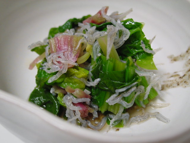 ↓ ほうれん草のおひたしにおじゃこを足して。