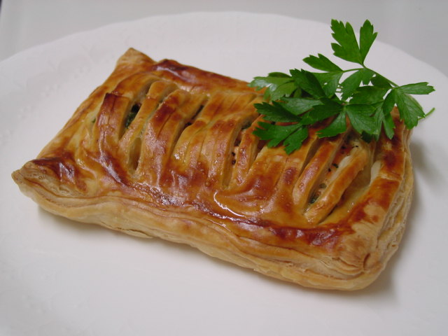 メインは冷凍庫でちょっと邪魔ッけだったパイ生地を使って、"サーモンのパイ包み焼き"。