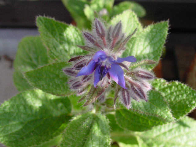 種蒔き時期が少々過ぎた去年の11月にエイヤーって感じで蒔いたボリジがとうとう一つ目の花を咲かせました。
