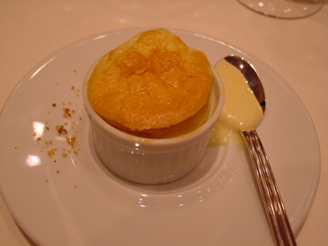 3皿目は、エポワスのスフレ。脇のスプーンの上は温めたエポワスです。