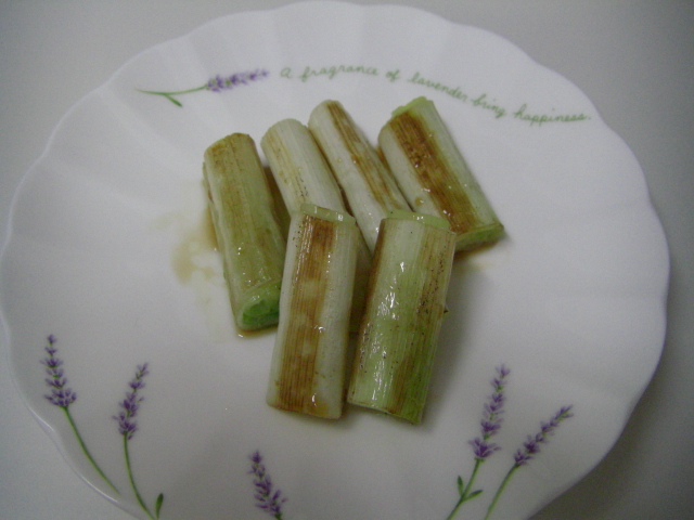 じわじわ焼いて、甘味を増したお葱にオリーヴ・オイルとお醤油をかけるだけでちょっとしたお箸休めになります・・・のん兵衛メニューですけれどネ(笑)