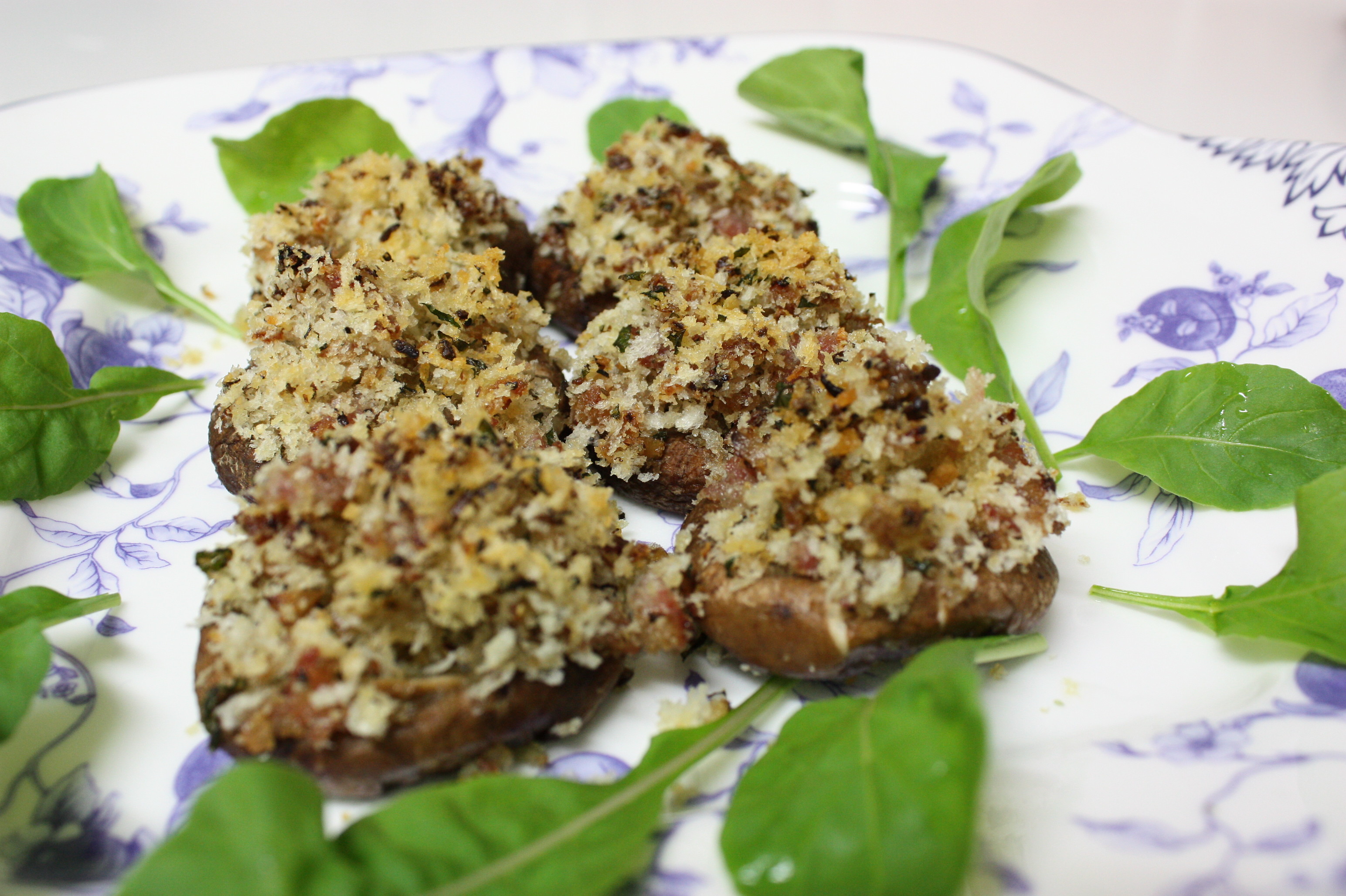 オリーヴ・オイルで湿らせた椎茸の茎とガーリックとパン粉を詰めて、グリルしました。
