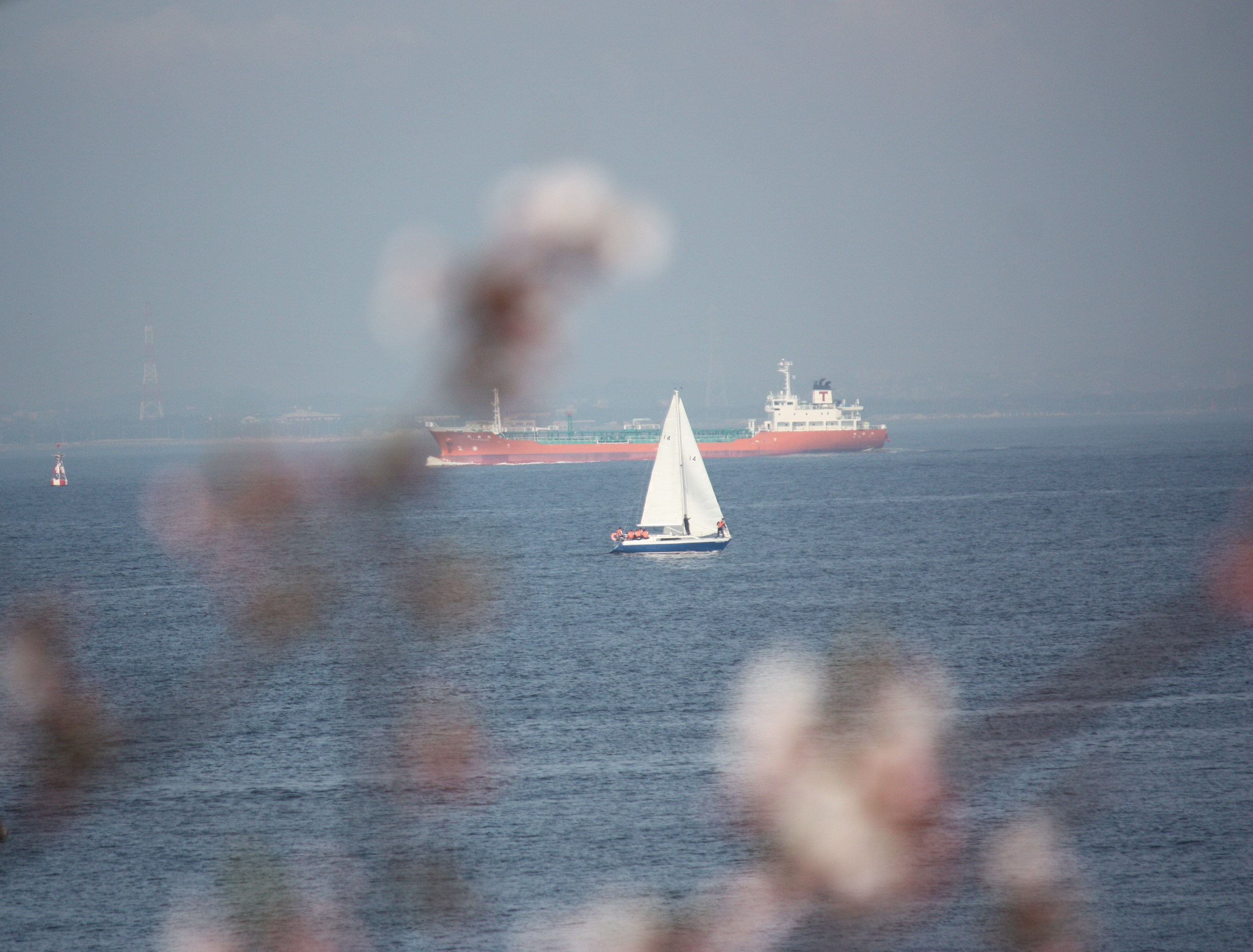 美術館の目の前に広がる東京湾では、貨物船や漁船、ヨットなどの大小の船がひっきりなしに行き交っています。