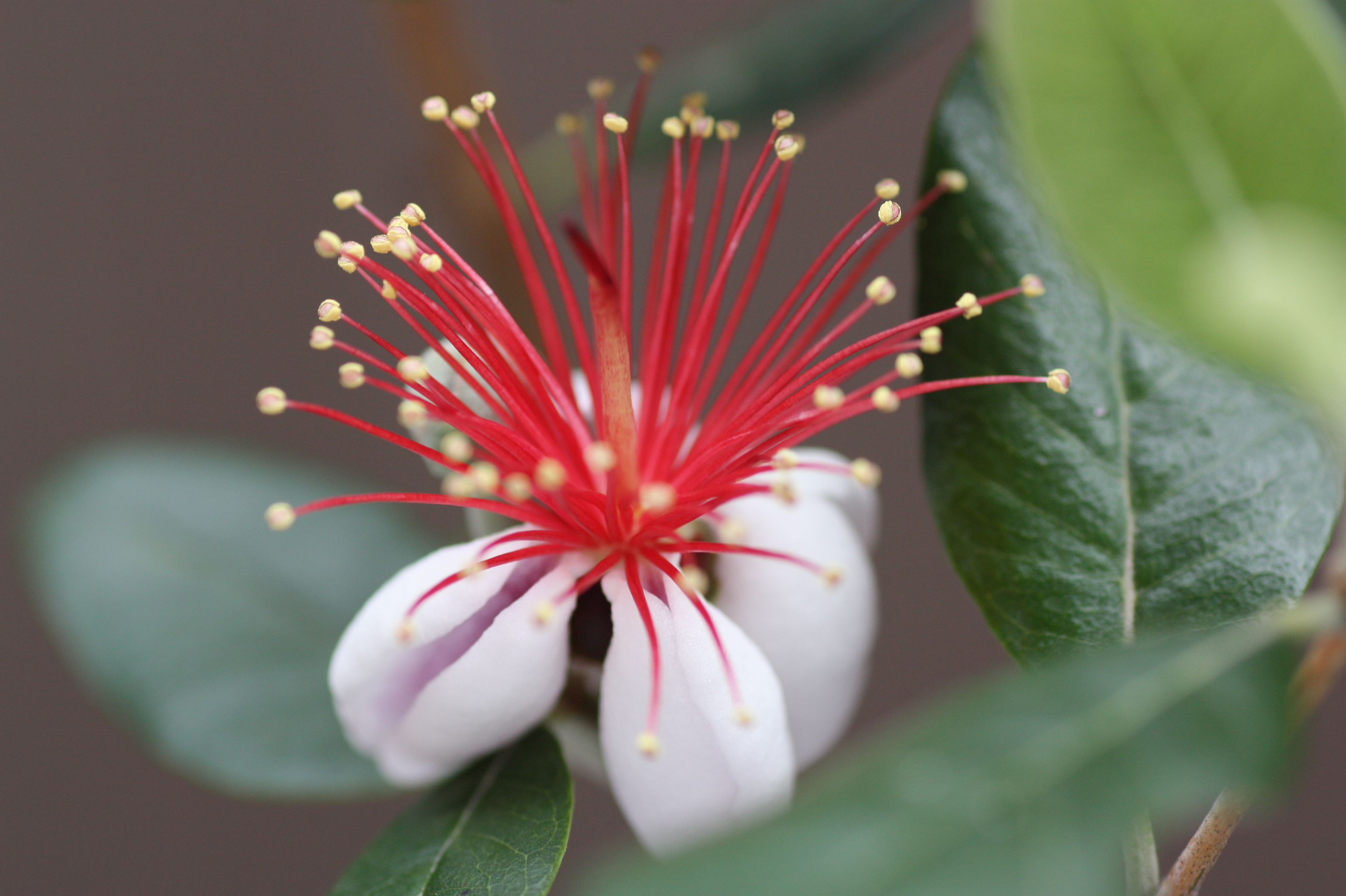 フェイジョアというのですか、珍しいお花ですね。