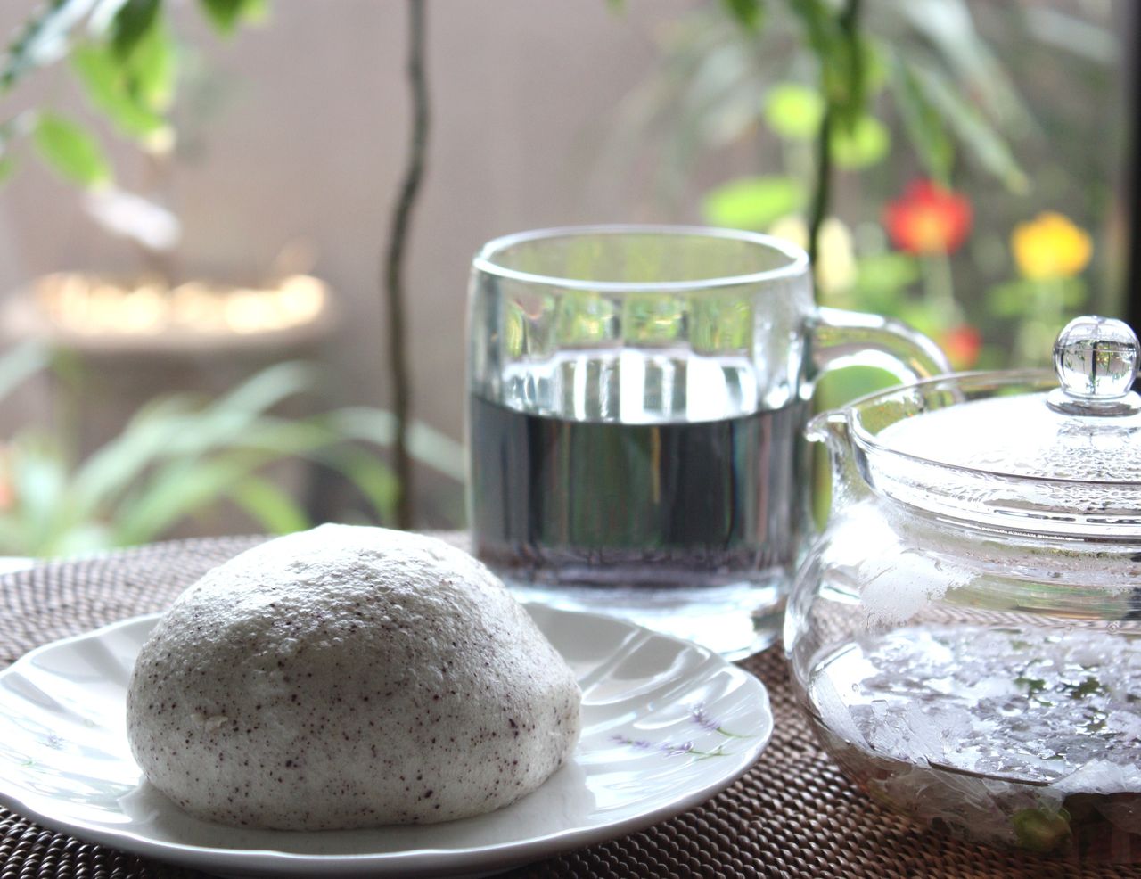 ハーブ・ティーの色は、紫陽花色のブルーにしてみました(^^)