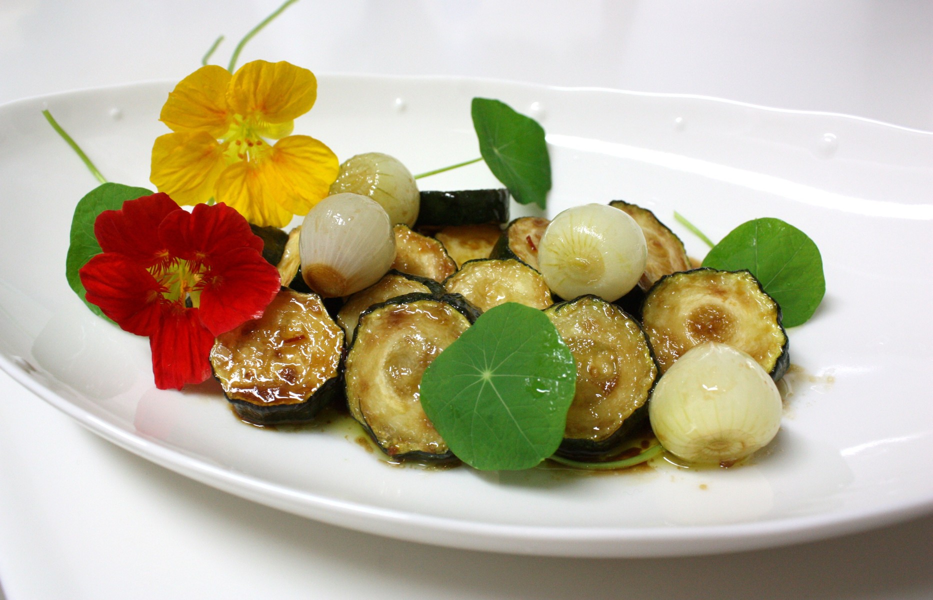 揚げたズッキーニとペコロスのマリネ。