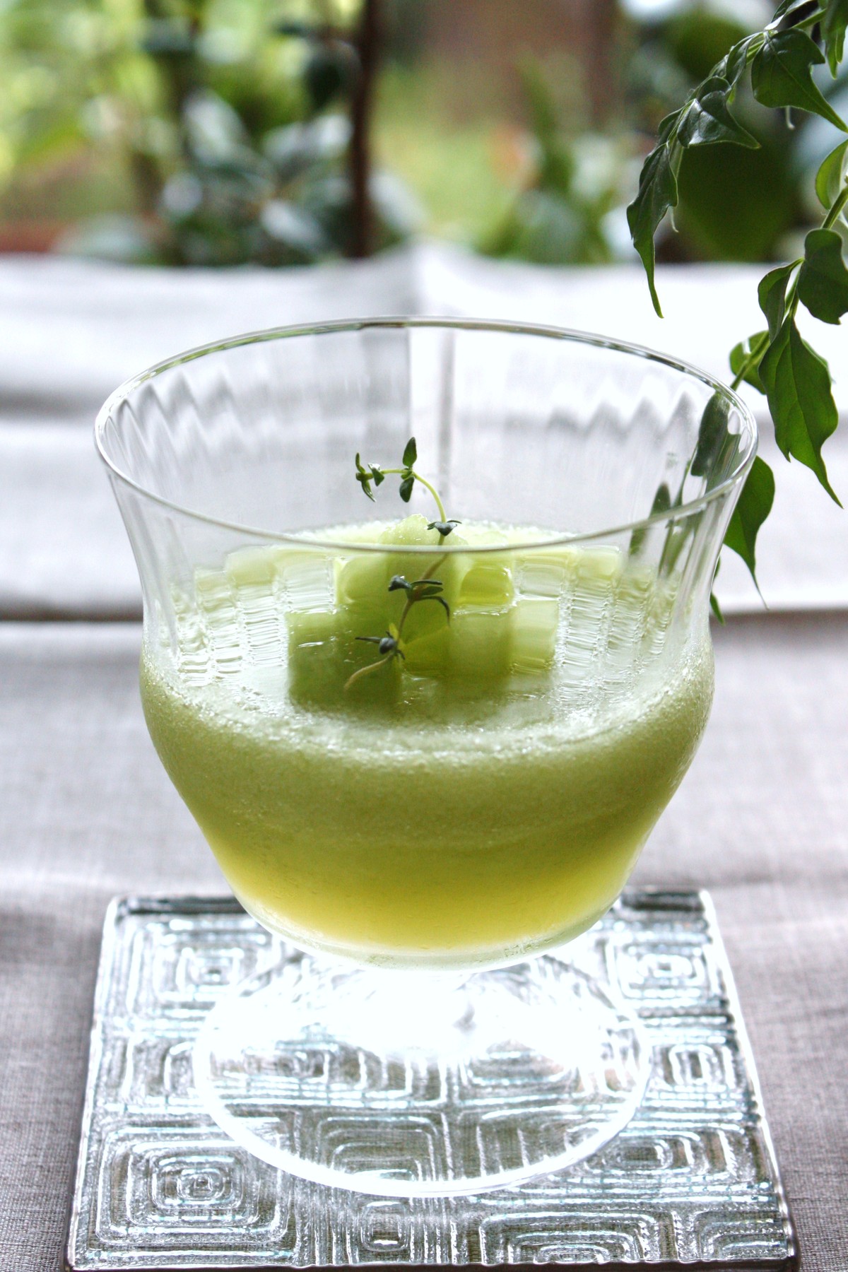 キューブにしたメロンとタイムを飾ったら、スープのようでもあったりして・・・(^^)