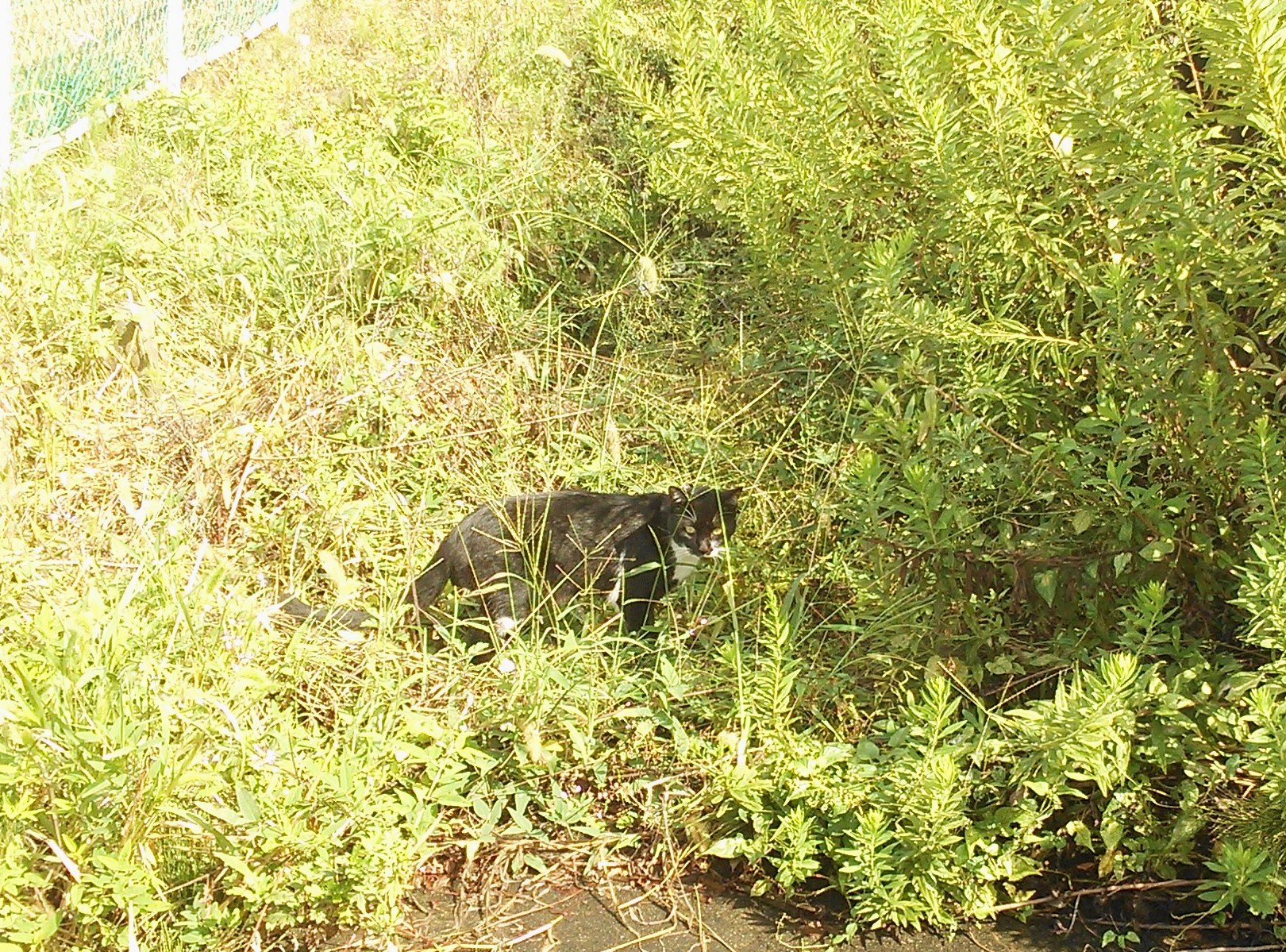 ↓ 草むらのシロクロちゃん。