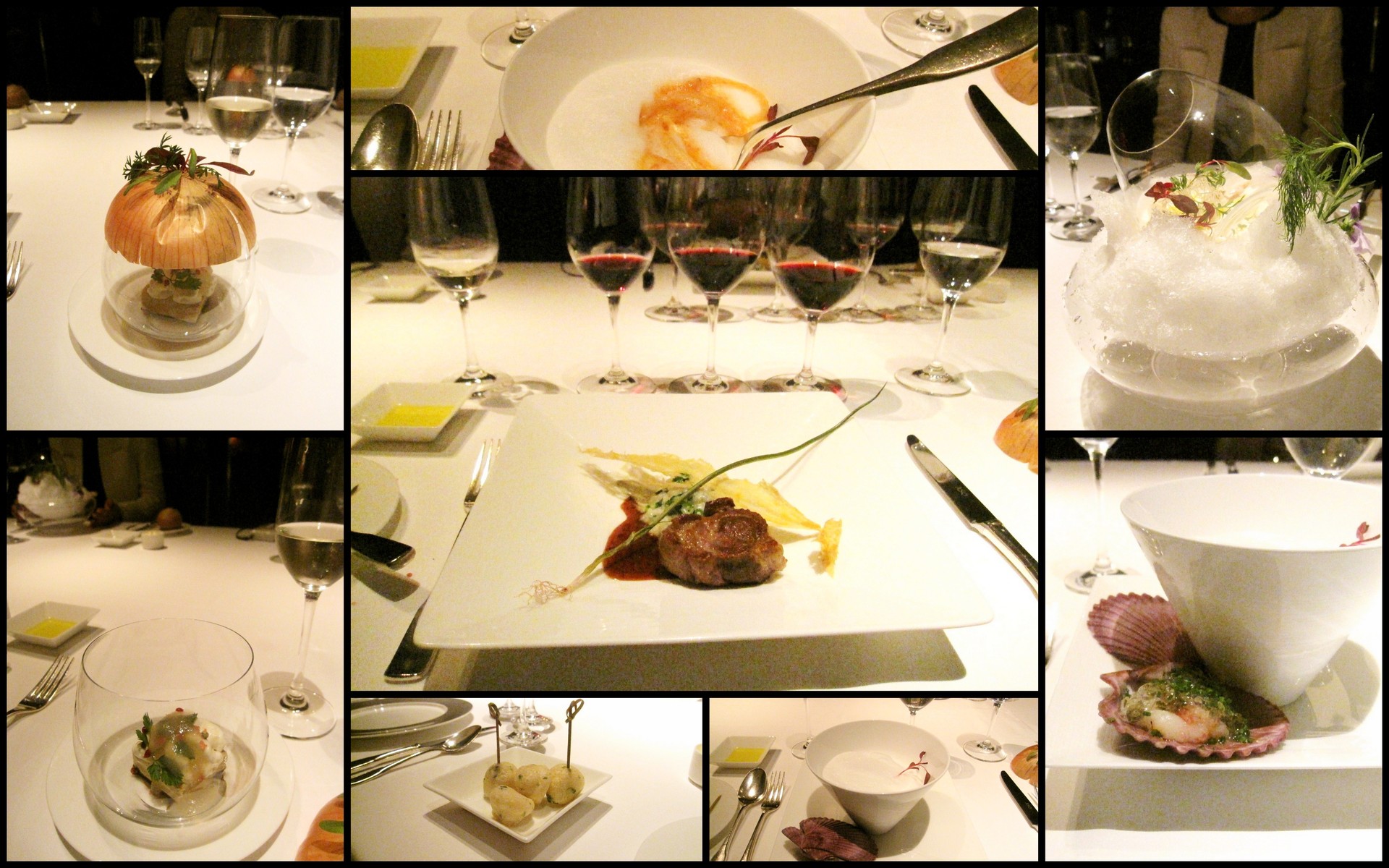 フォアグラが苦手な方には、根セロリを使ったお料理でした。氷の中のグラスに入っていて、とても斬新 (写真右上)。