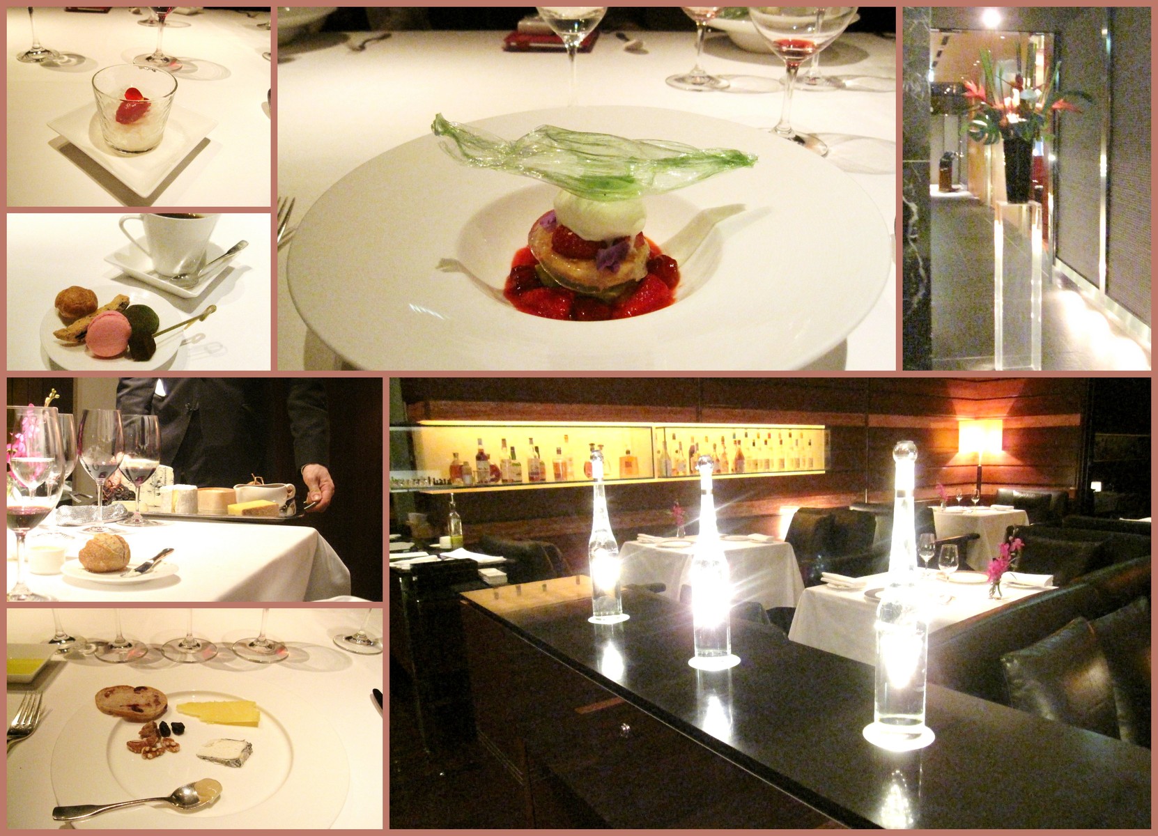 デザートは、苺とピスタチオのミルフィーユ (写真中央上)。上のグリーンは、飴細工です。スプーンでカシャカシャっと崩しました。