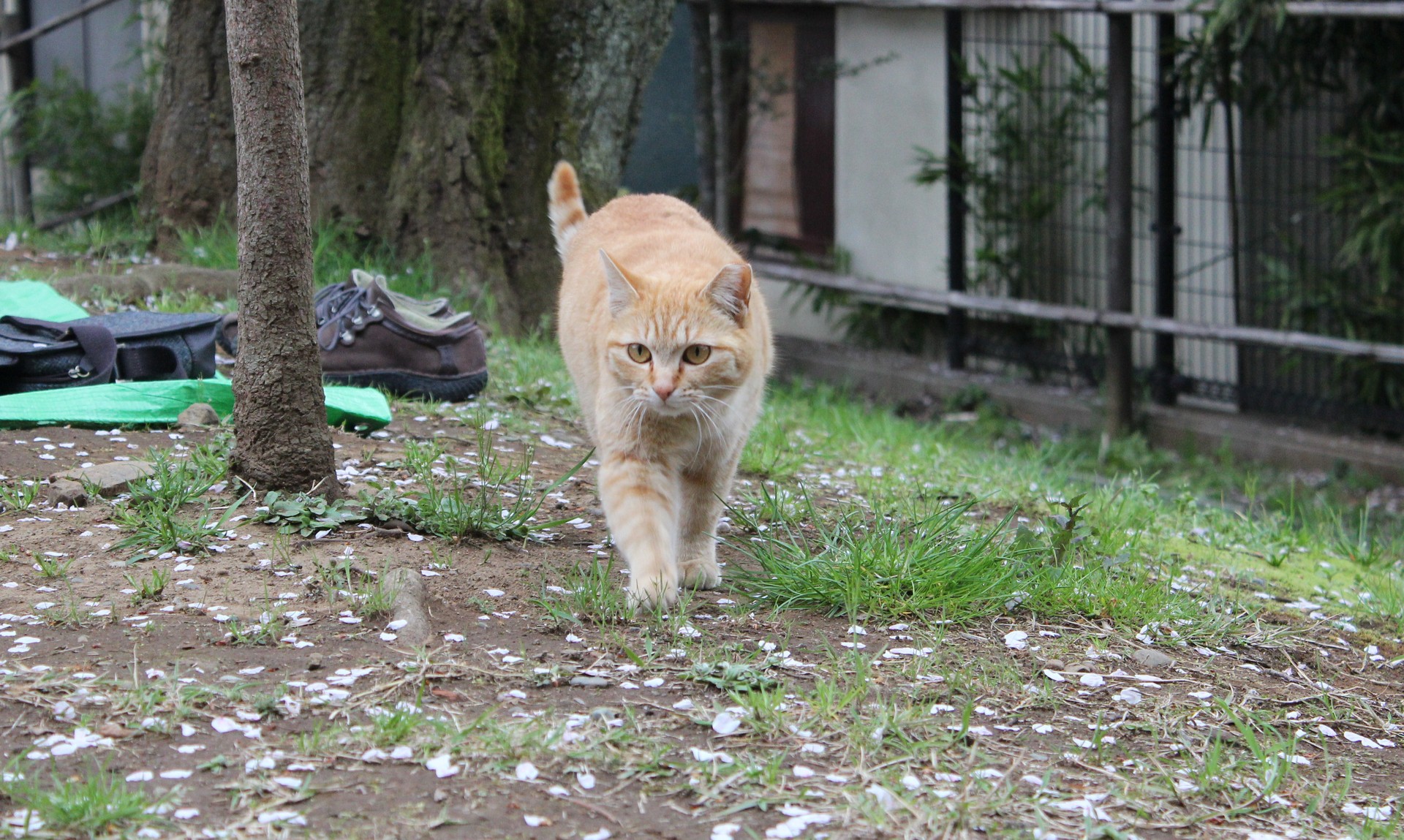 お花見のお座敷(?) の横を通って颯爽と歩いてきた茶トラちゃん