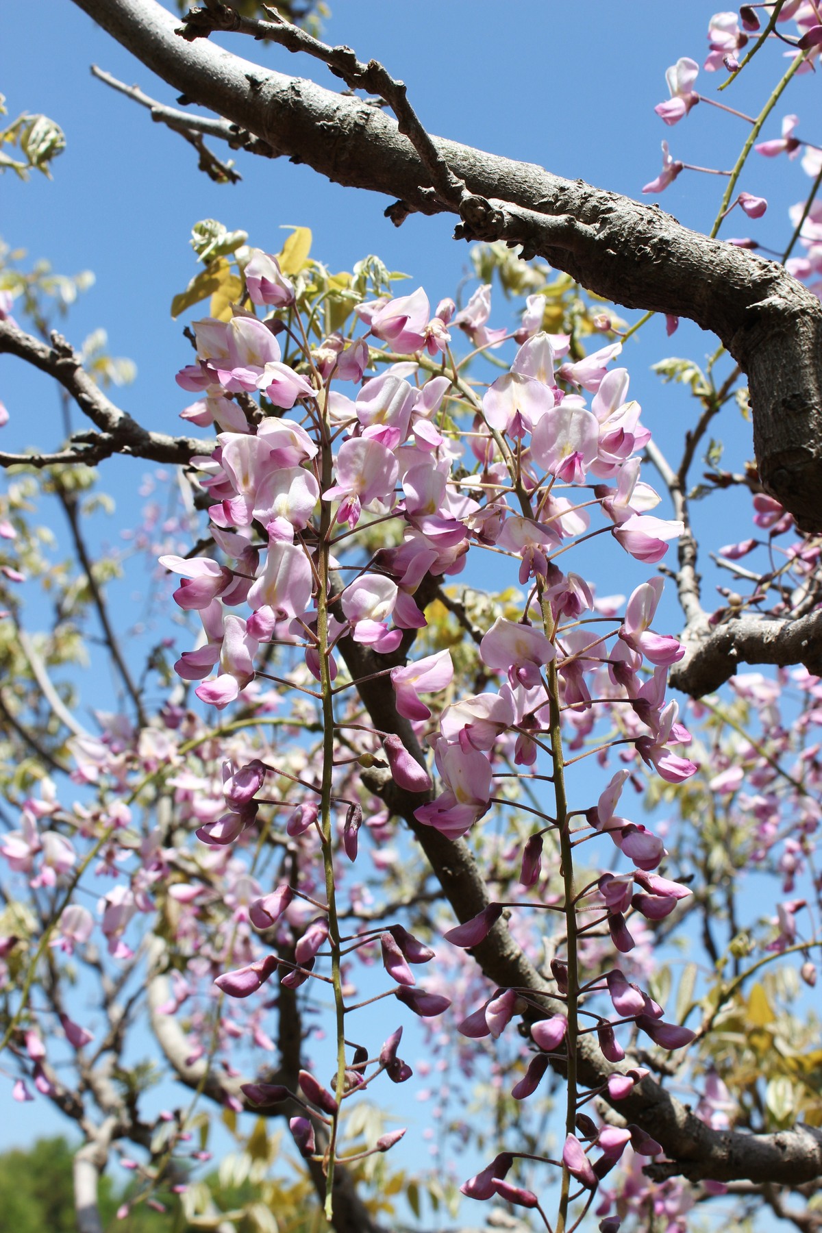 藤ってたいてい、棚に作られているのに、自然の藤の木の様子がいいなって思いました。