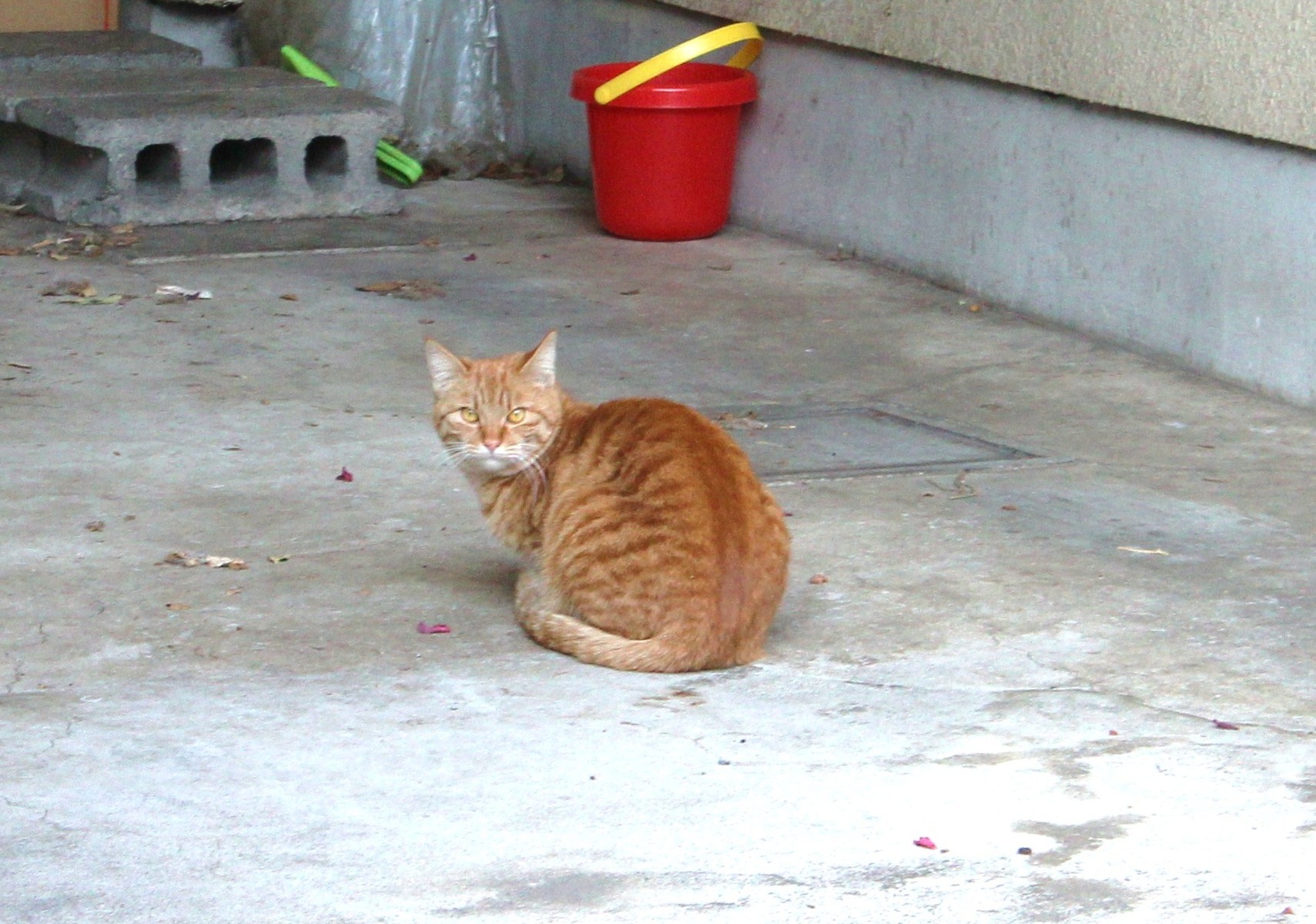 どこかのお家の駐車場にいた茶トラちゃんは、背中の柄が綺麗な子でした。