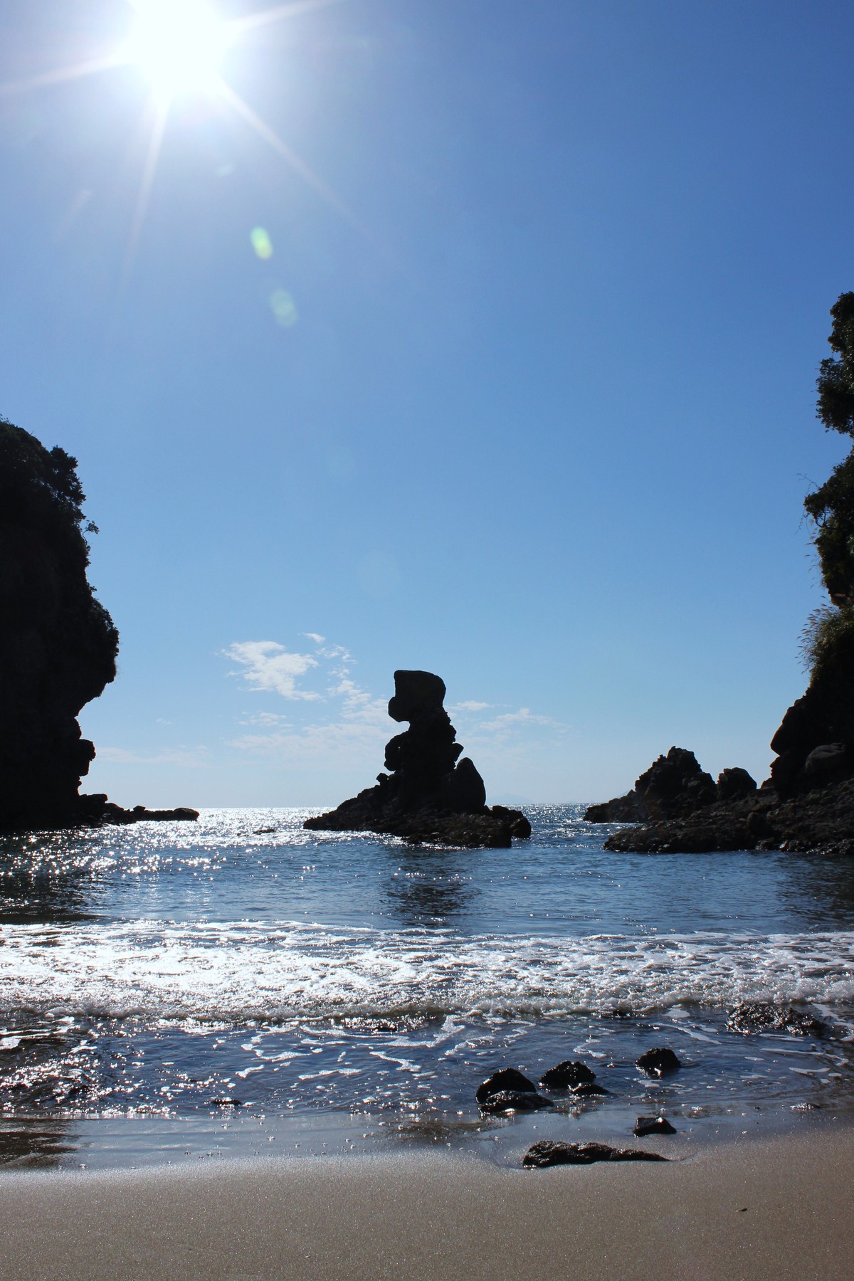 人形岩は、鹿児島の薩摩川内市西方というところにあります。海はすご〜く綺麗です。そう言えば、海水に触ってみませんでした。でも、子供たちが遊んでいましたから、そんなに冷たくはなかったと思います。
