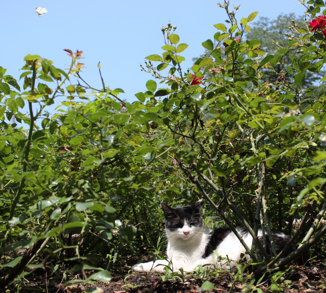 ニャーちゃんの左上のモンシロチョウ、見えますか?