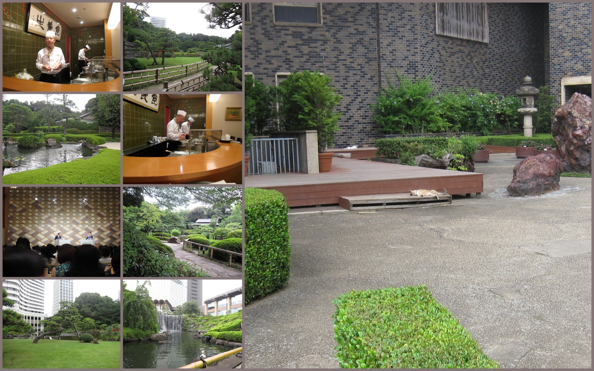 セミナーの後、冷房が効いている会場は寒いくらいだったので、体を温めるためにお庭を散歩していたら、猫ちゃん発見!!(写真右)
