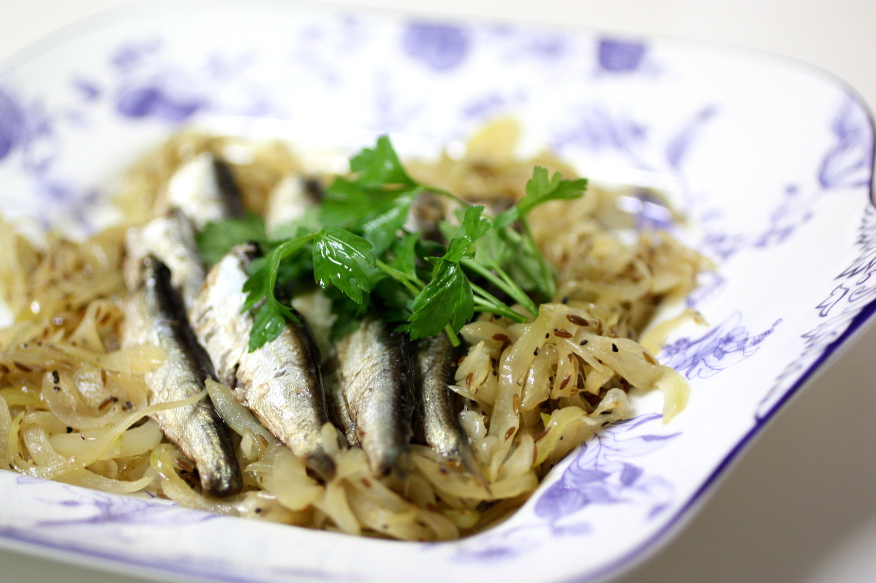 クミンシードは、キャベツと合わせることが多いけれど、玉ねぎとも好相性。 オイルサーディンは、缶のまま湯煎にして温めただけ。