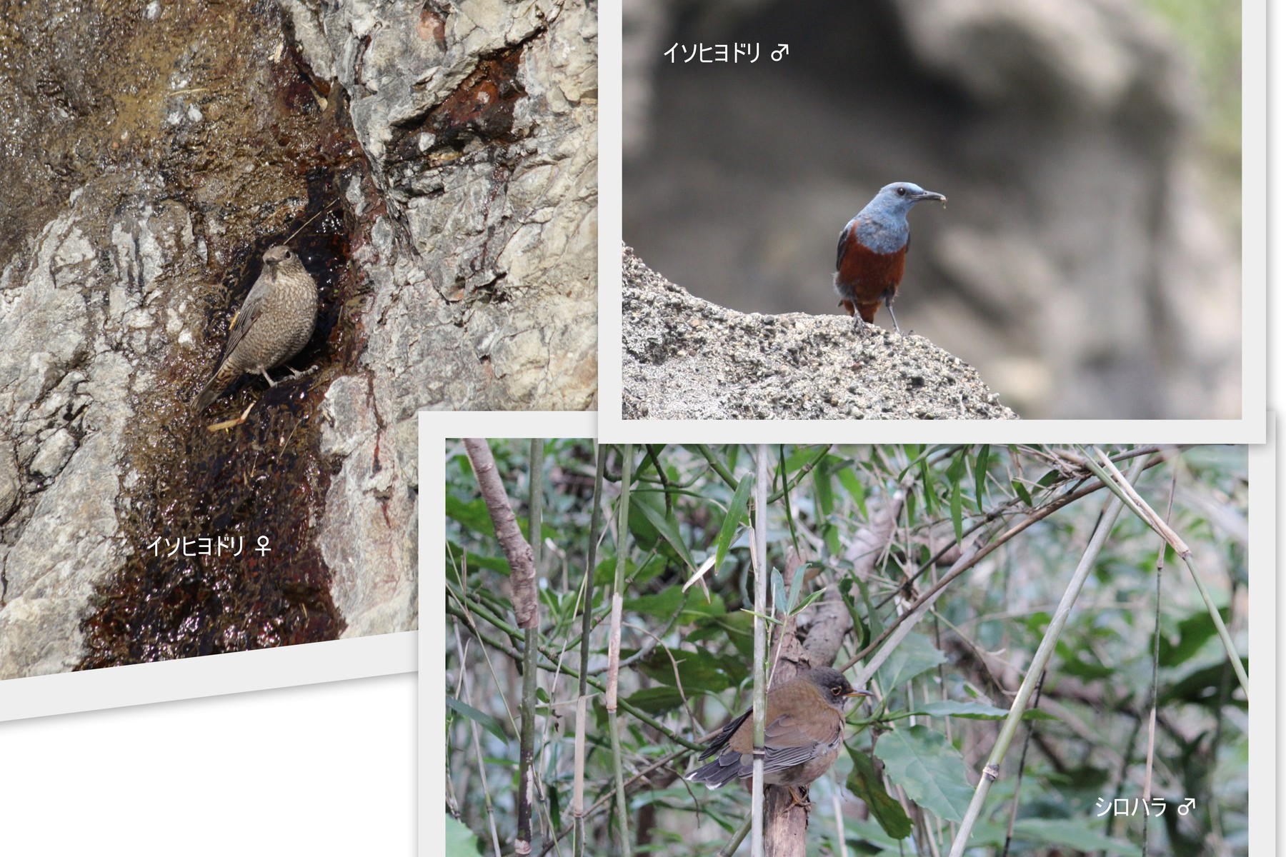 写真の右上は、城ヶ島で見たイソヒヨドリの雄です。