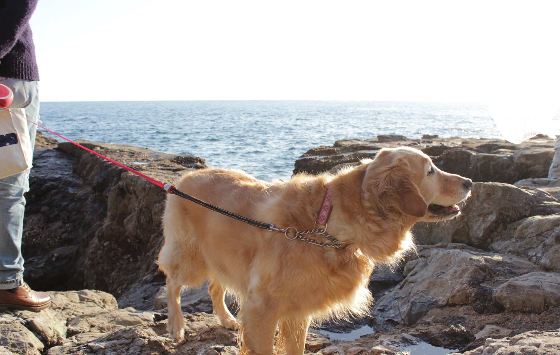 このワンちゃんはもう帰るところだったの。なのに、磯溜まりにドボンしちゃって(^^)