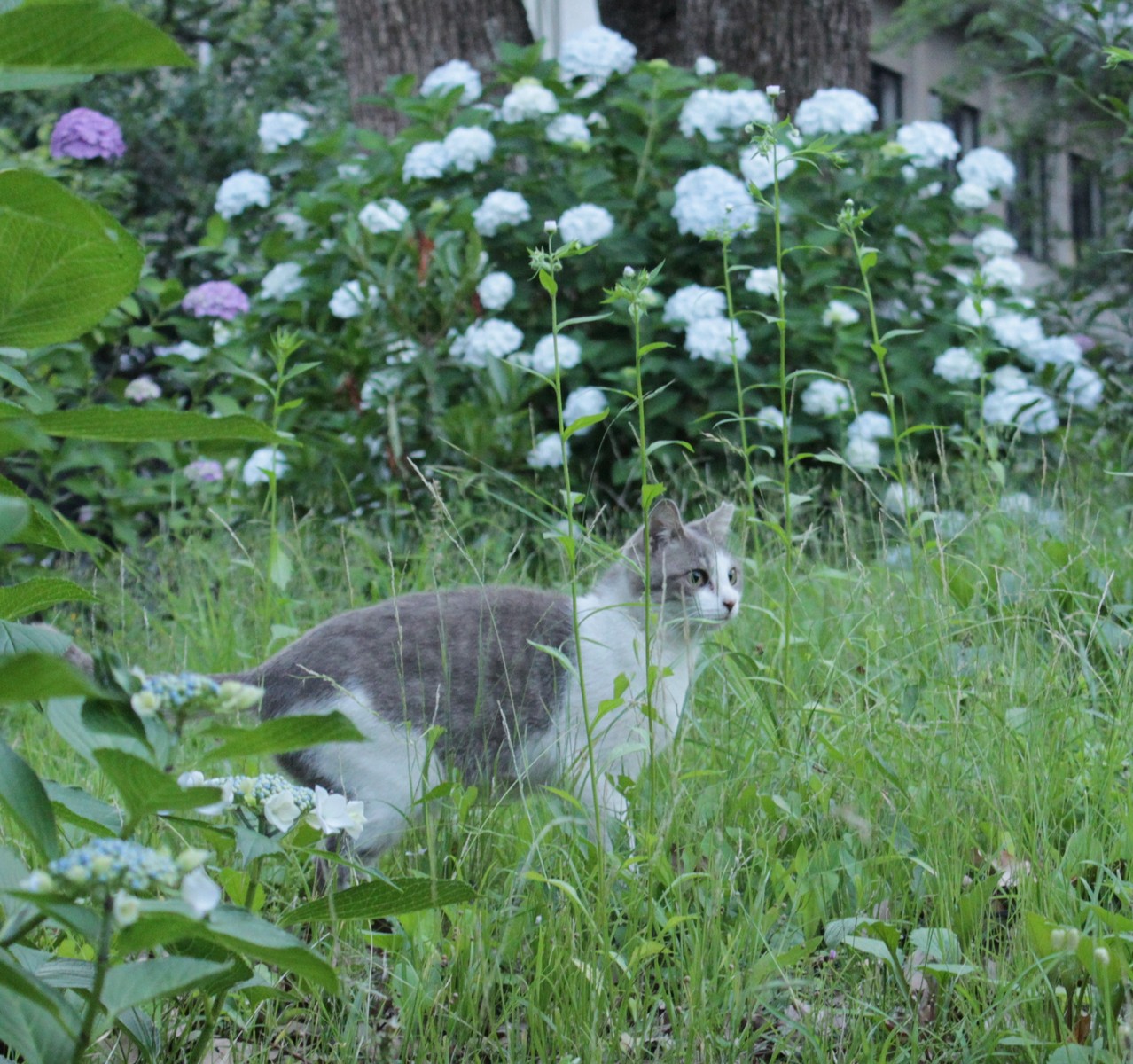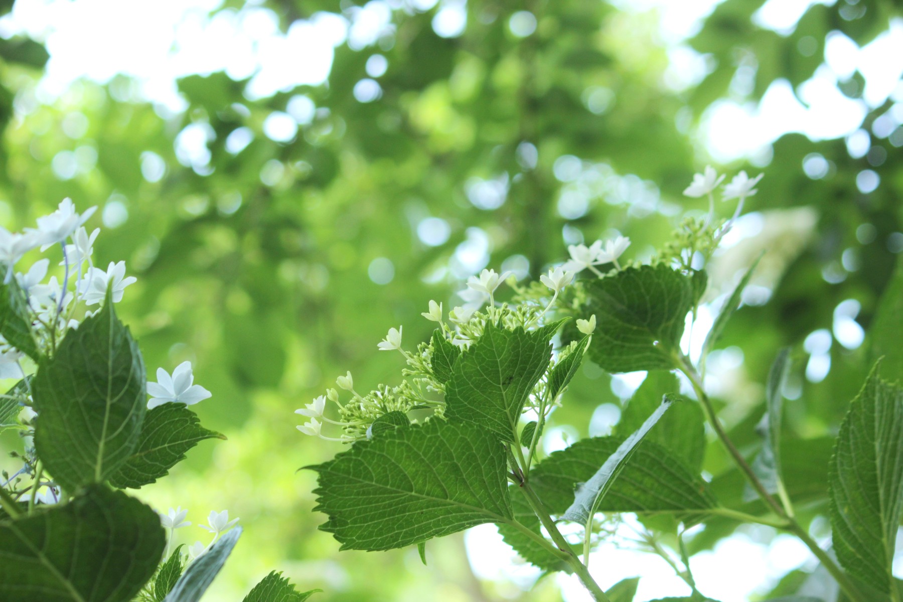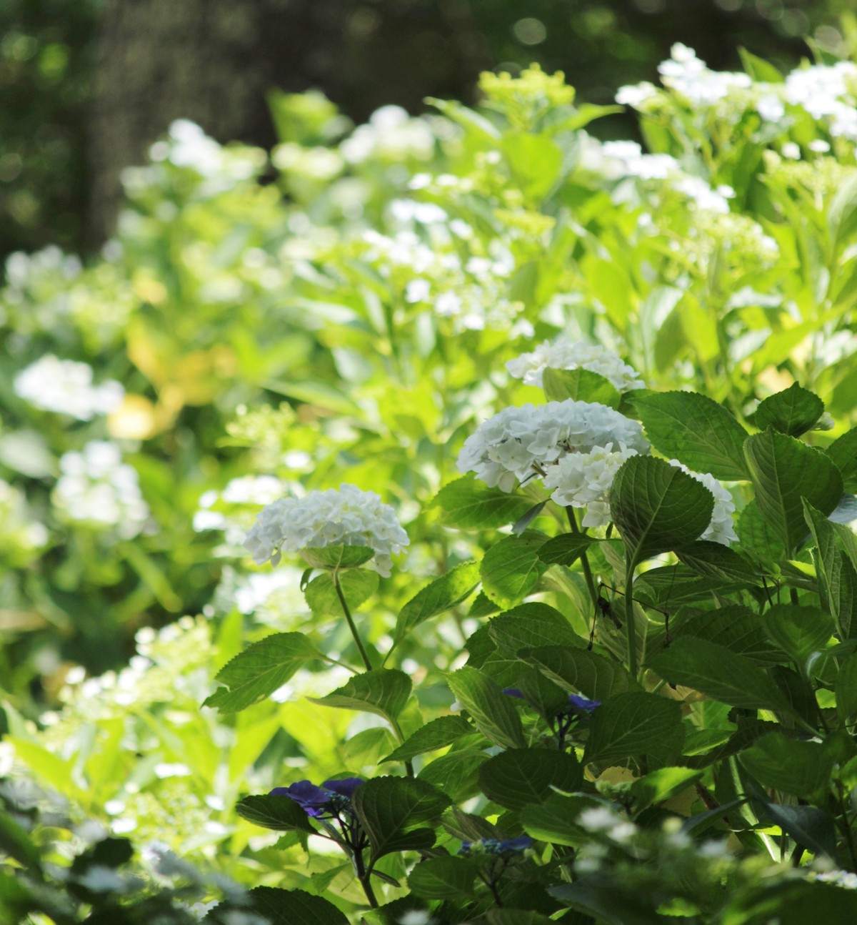 少しブルーがかった白い紫陽花がとても綺麗でした。