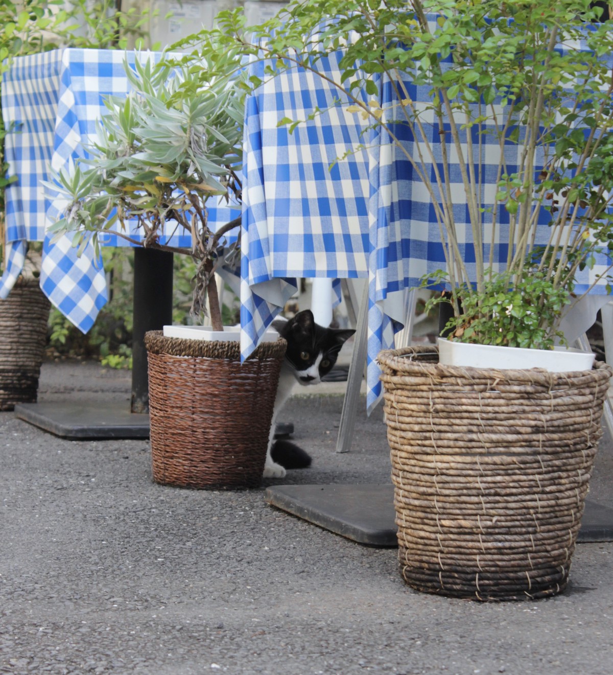 カフェのお外のテーブルの下で遊んでいたニャーちゃん。