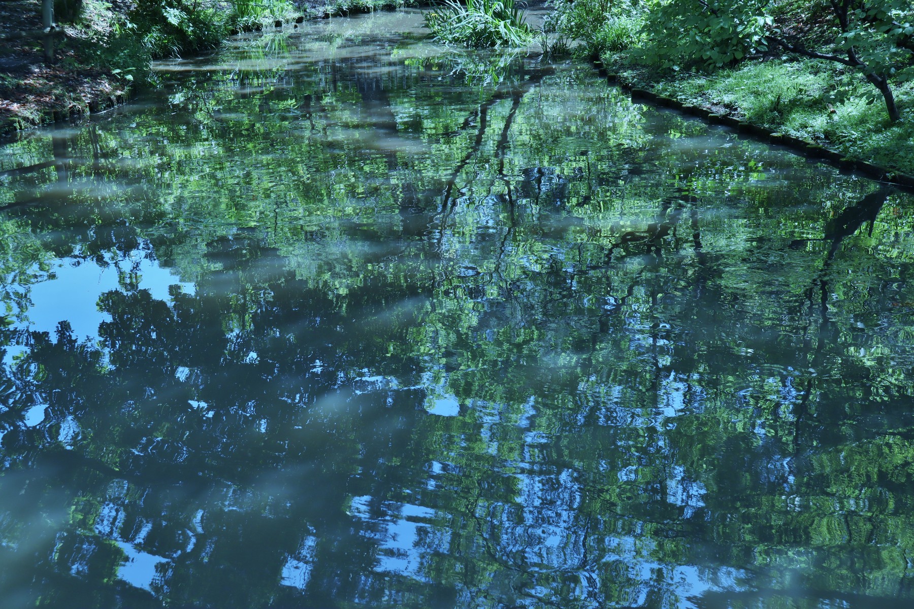 流れに映る木々