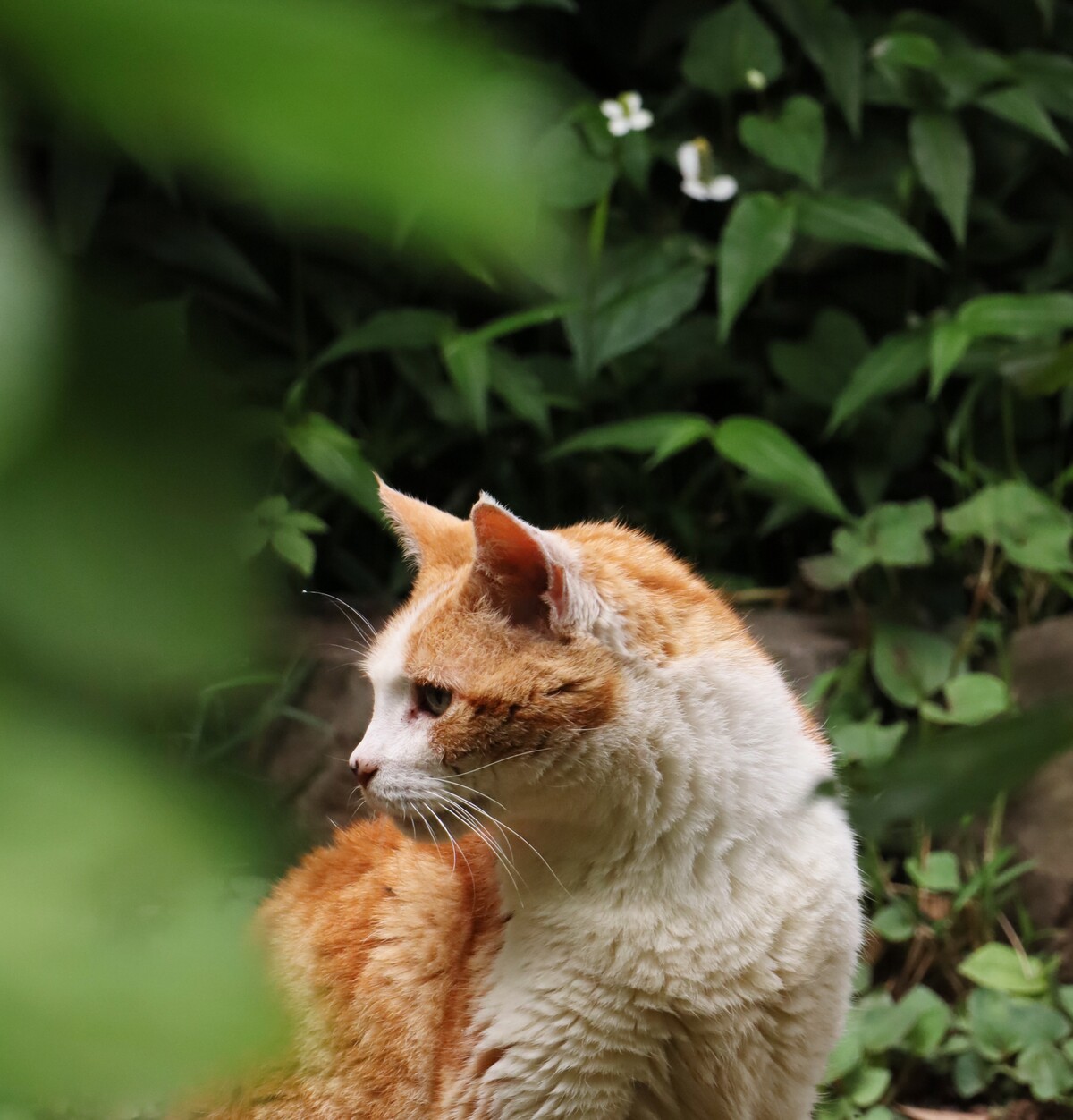 ドクダミのお花とニャーちゃん。
