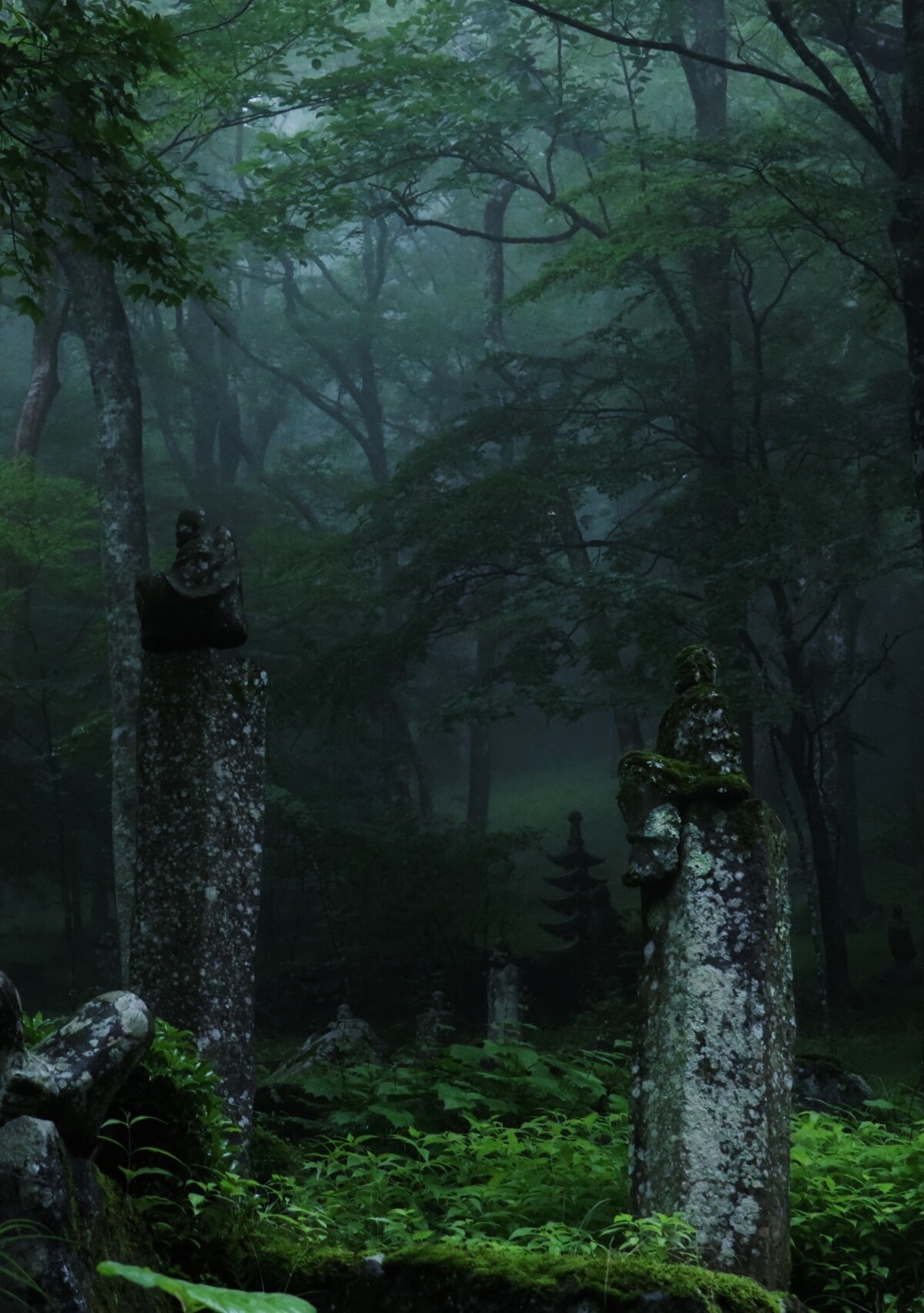 霧もかかり、鬱蒼とした感じの森に