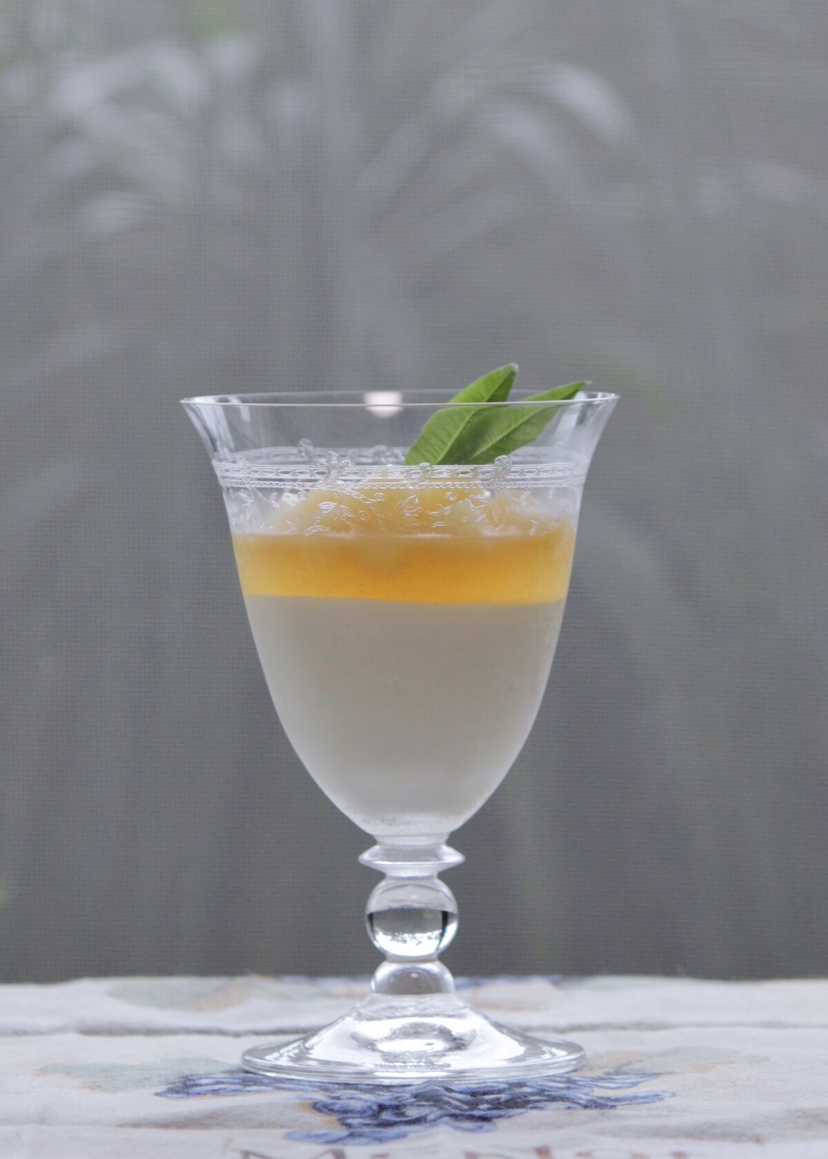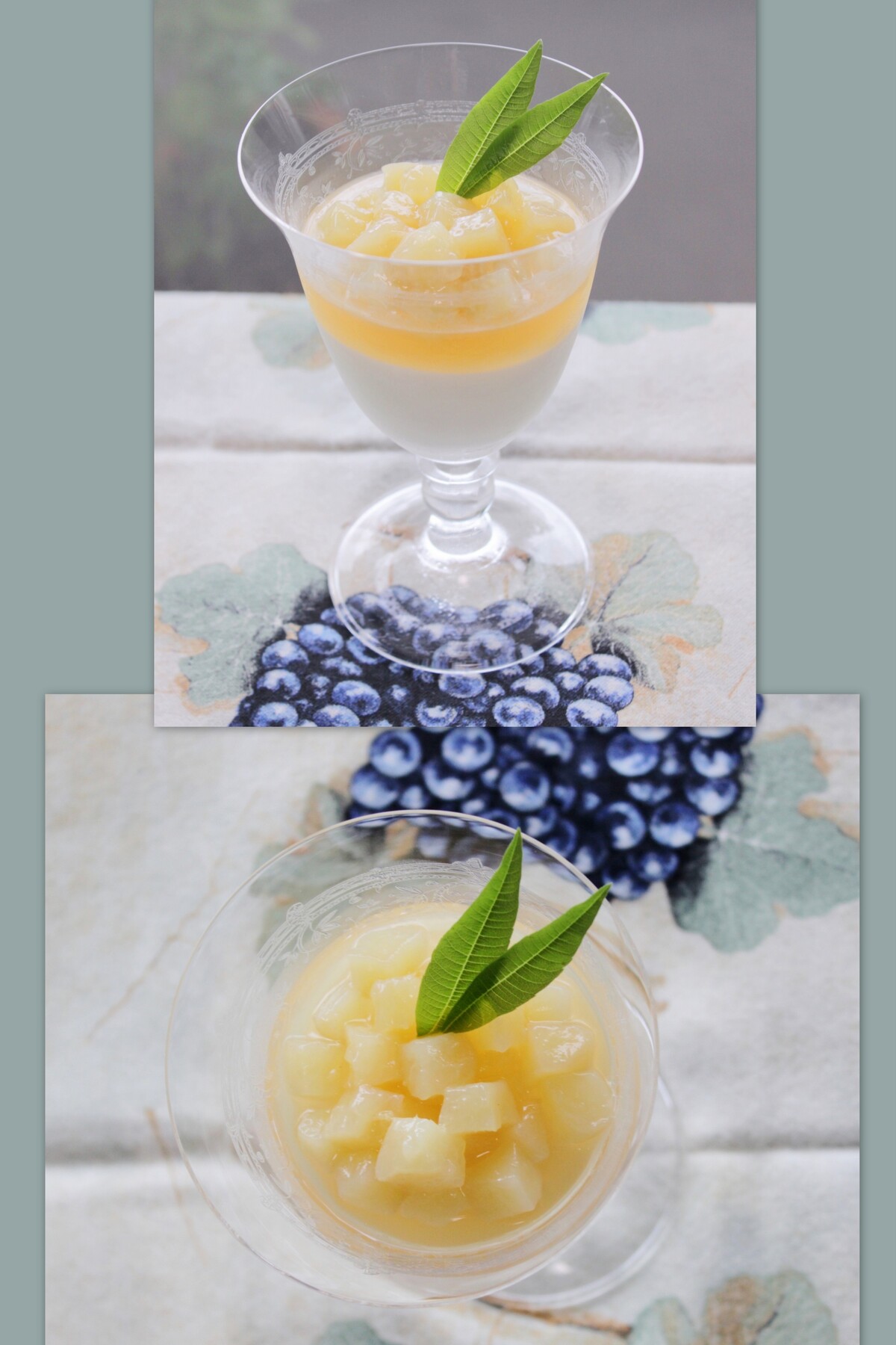 先日 UPした "桃のコンポート 2020" の周囲と同じものを固めたジュレの上に、小さなダイスにカットしたコンポートを載せました。