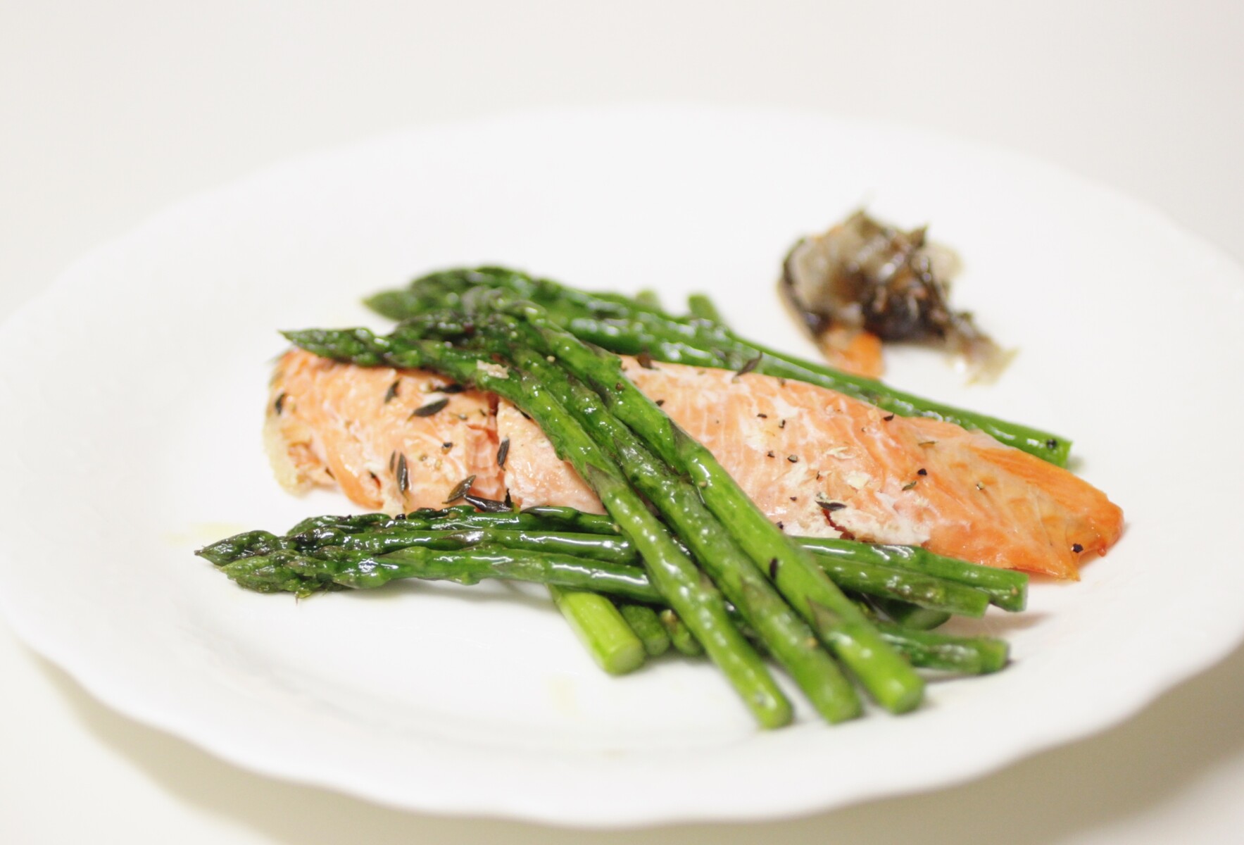 サーモンの下に敷いた網にオイルを塗り忘れ・・・くっついた!💦