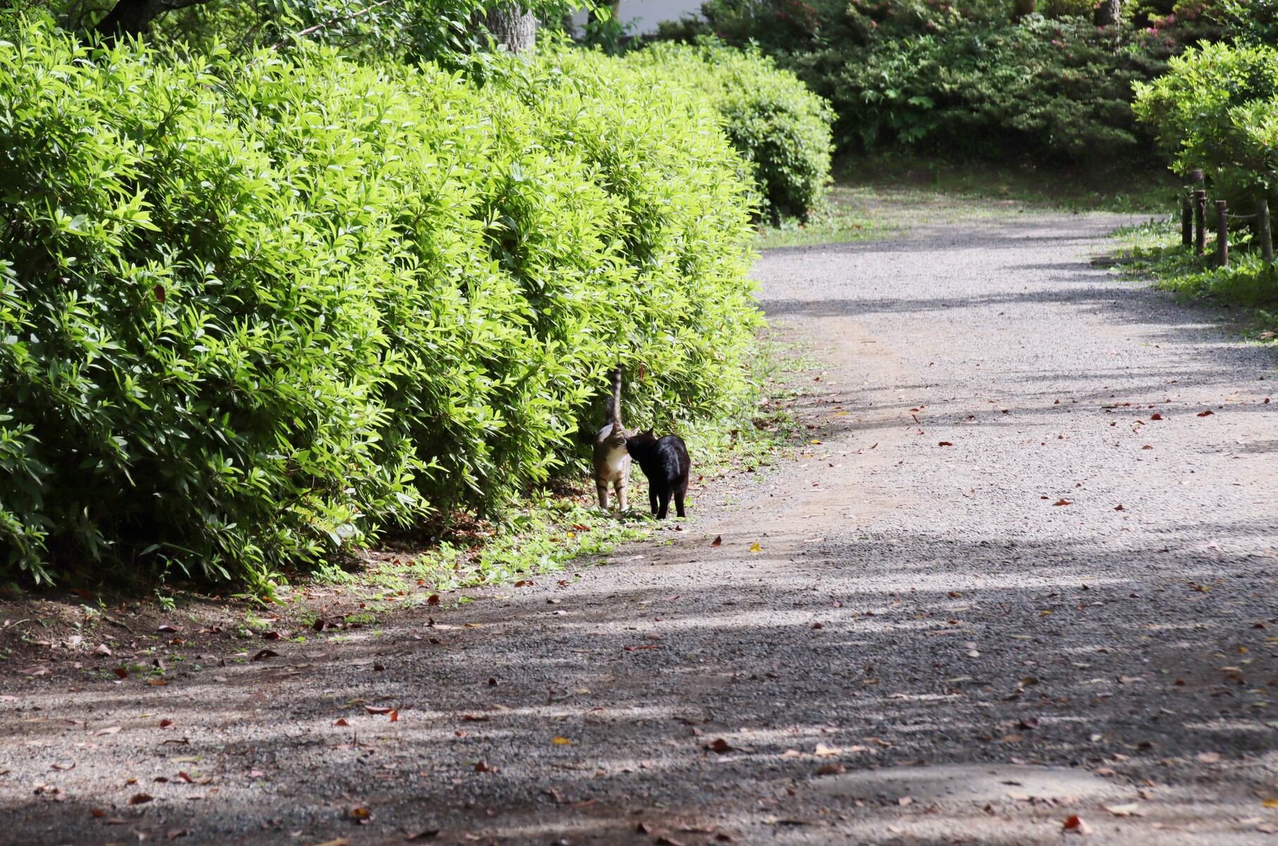 クロちゃんは、斜めに歩いて行って向こうから来たニャーちゃんにご挨拶🐱