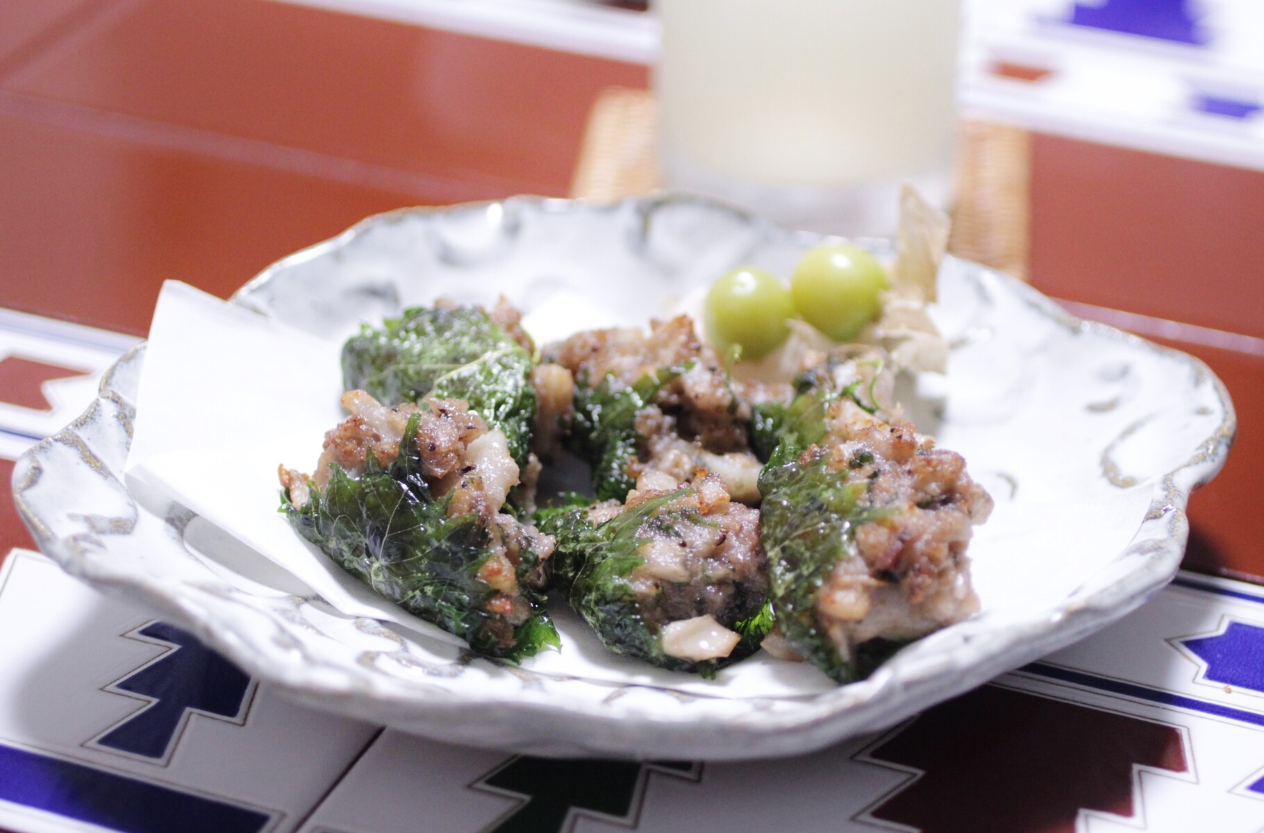 この前の蓮根とミンチを大葉に包んで、揚げ焼き。