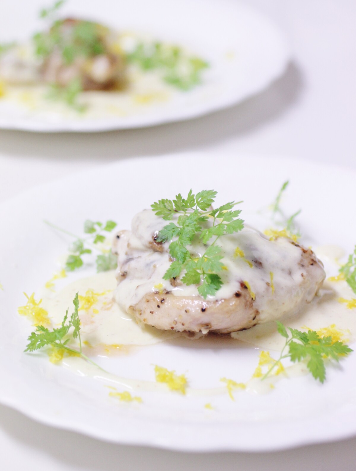 セルフィーユとレモンのゼストを散らしました。