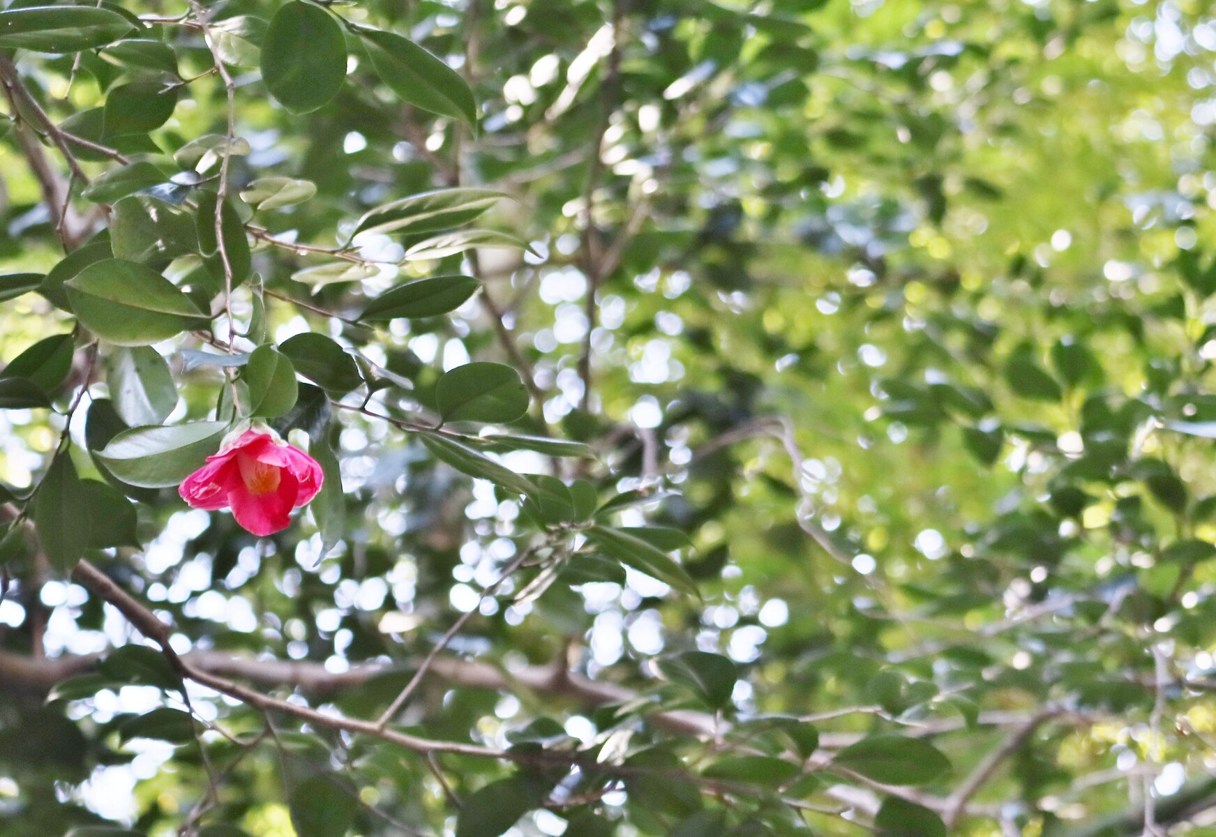 期待していた、大きな木から下がる "藪椿"