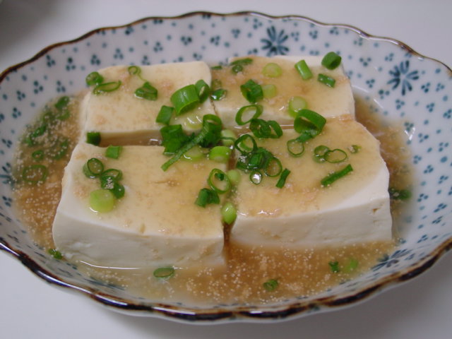 お豆腐は茹でてから、たらこをほぐし入れたあんをかけました。彩りに小ねぎも散らして。