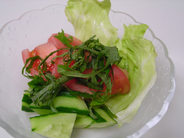 ぬた和えには山椒の木の芽をいっぱい入れるのが好きなのですが、今夜は紫蘇の葉を乗せてみました。