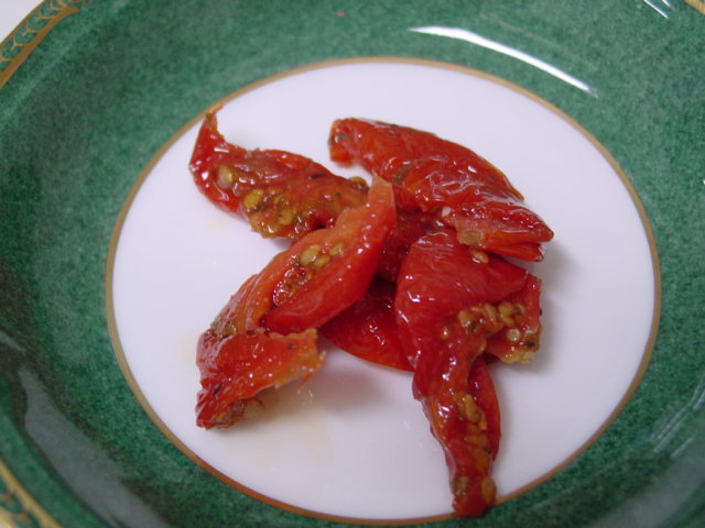 私の大好きなセミドライトマト。先日出かけたFOODEXJAPAN2006でも何種類か試食しましたが、いつものこれが私には一番美味しい◎ 同じセミドライトマトでもあんなに色々な味付けがあるとは思いませんでした。