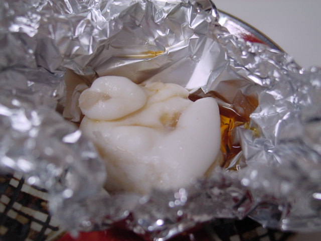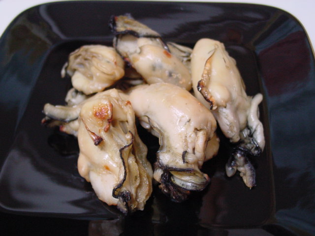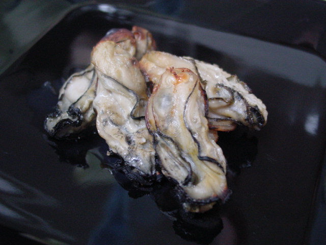 多分これが今シーズン最後の牡蠣だったのに・・・塩焼きにしたのは良いけれど、火が強すぎたみたい・・・先が焦げちゃった(泣)