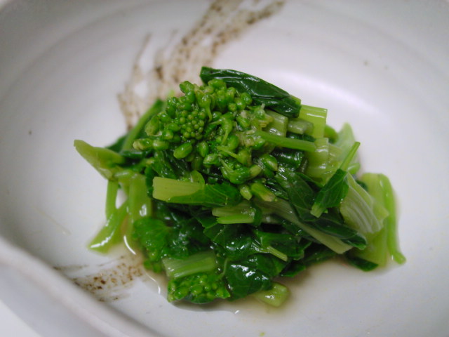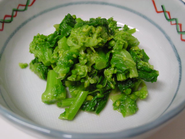 菜の花のおひたしは辛子和えにしました。