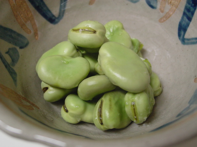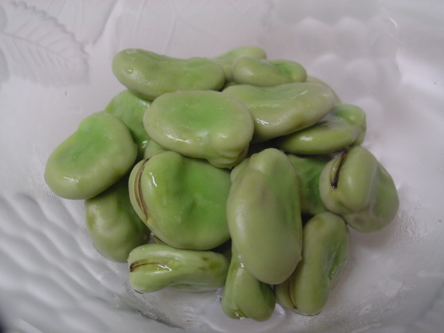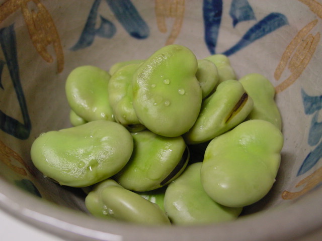 だんだん実の入り方がまともになってきたそら豆は塩茹で。